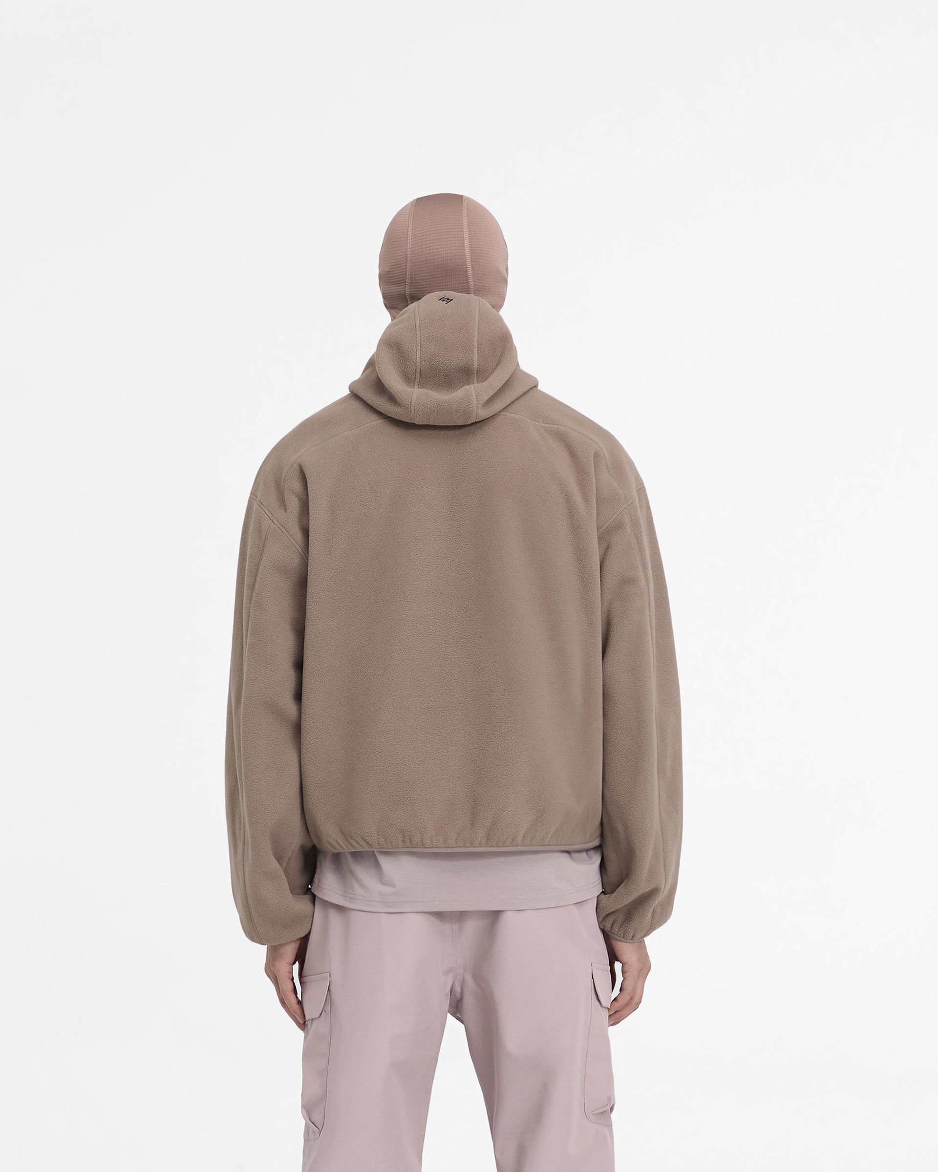 Introducing the 247 Fleece Hoodie in Umber, the ideal midlayer to maintain warmth for every walk or hike. The hoodie has an oversized boxy fit, with DTM binding to the hem and sleeve opening and a zip to the high chin guard for complete coverage. The hoodie has zip pockets to the front body for secure storage of valuables. It is finished with cover stitch seam detailing throughout and an embroidered 247 logo to the front and hood.