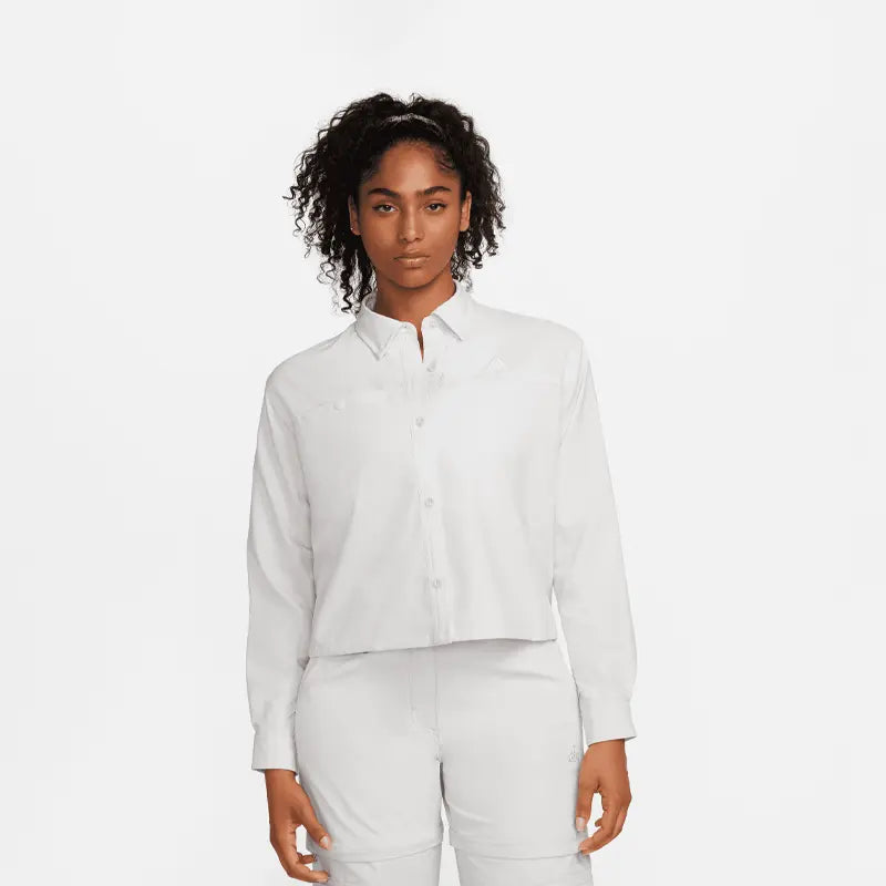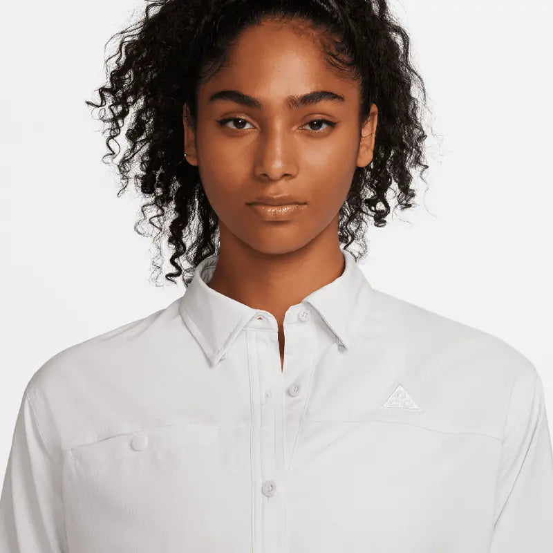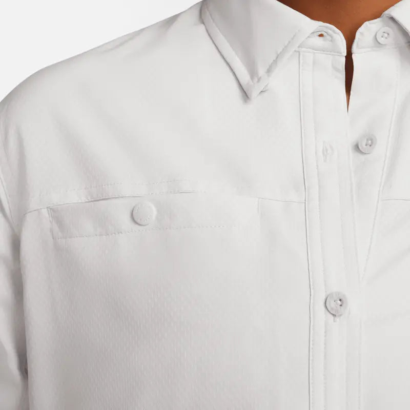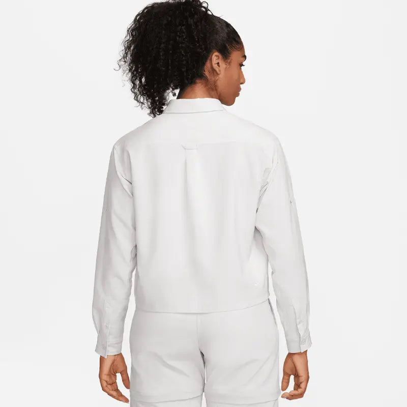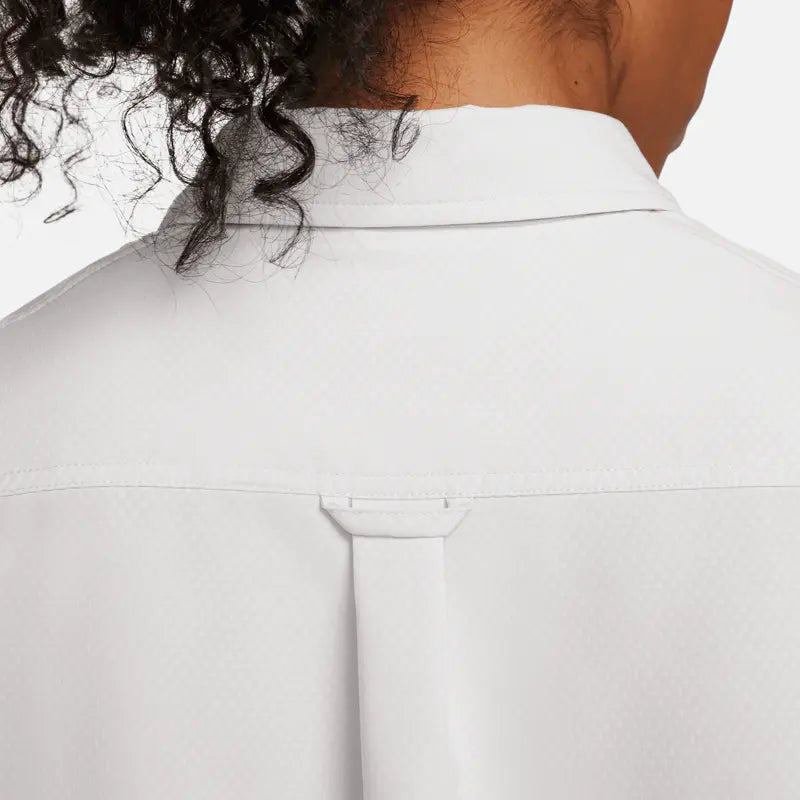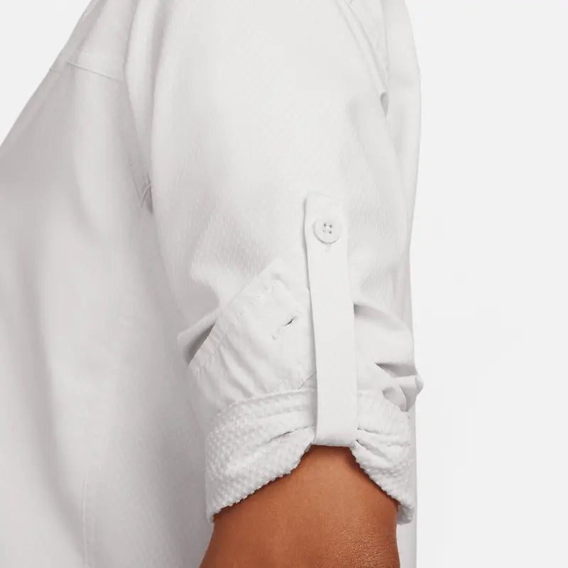 Have fun in the sun in a top that helps keeps you covered from the rays. Roll up the sleeves and secure them with the button to let your arms get some sun as you lean into a range of styling options. Either way, the smooth, sweat-wicking fabric makes this the perfect piece whether you're hiking a volcano or going to a park.