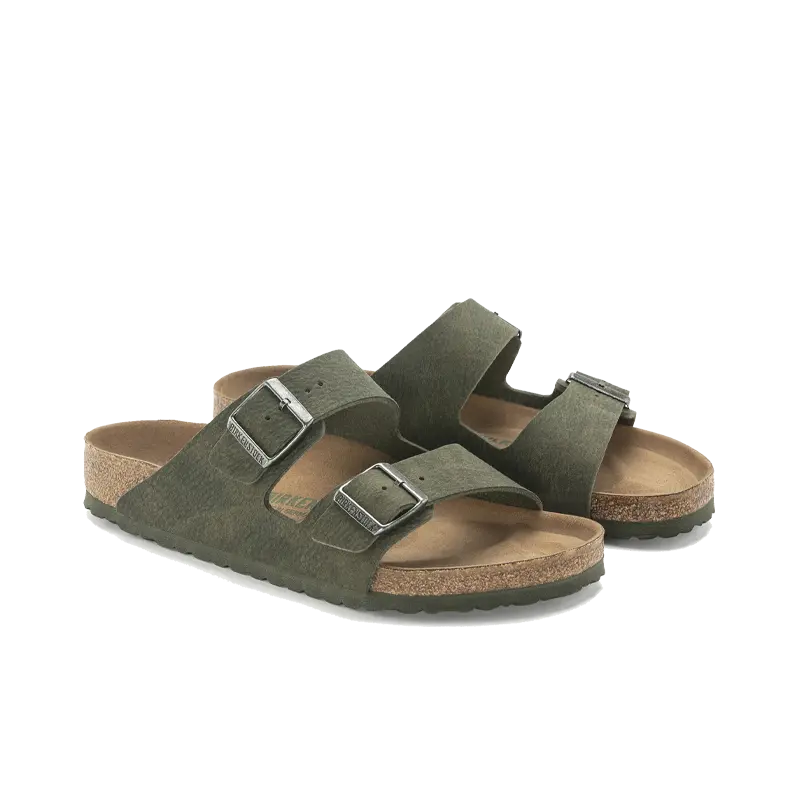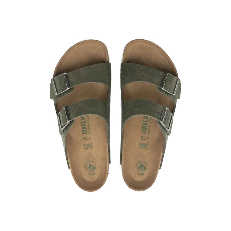 The BIRKENSTOCK Arizona is a genuine classic that has been delighting both men and women with its timeless design for decades. The color-coordinated outsole rounds off the shoe’s look of sophistication. This classic model has been given an update in a new material, with a vegan version now available. It is entirely free of animal products, as verified by independent testing laboratories. The upper is made from skin-friendly microfiber. The sandal boasts sophisticated material use with a matte finish that’s reminiscent of natural leather while nevertheless being 100% vegan.