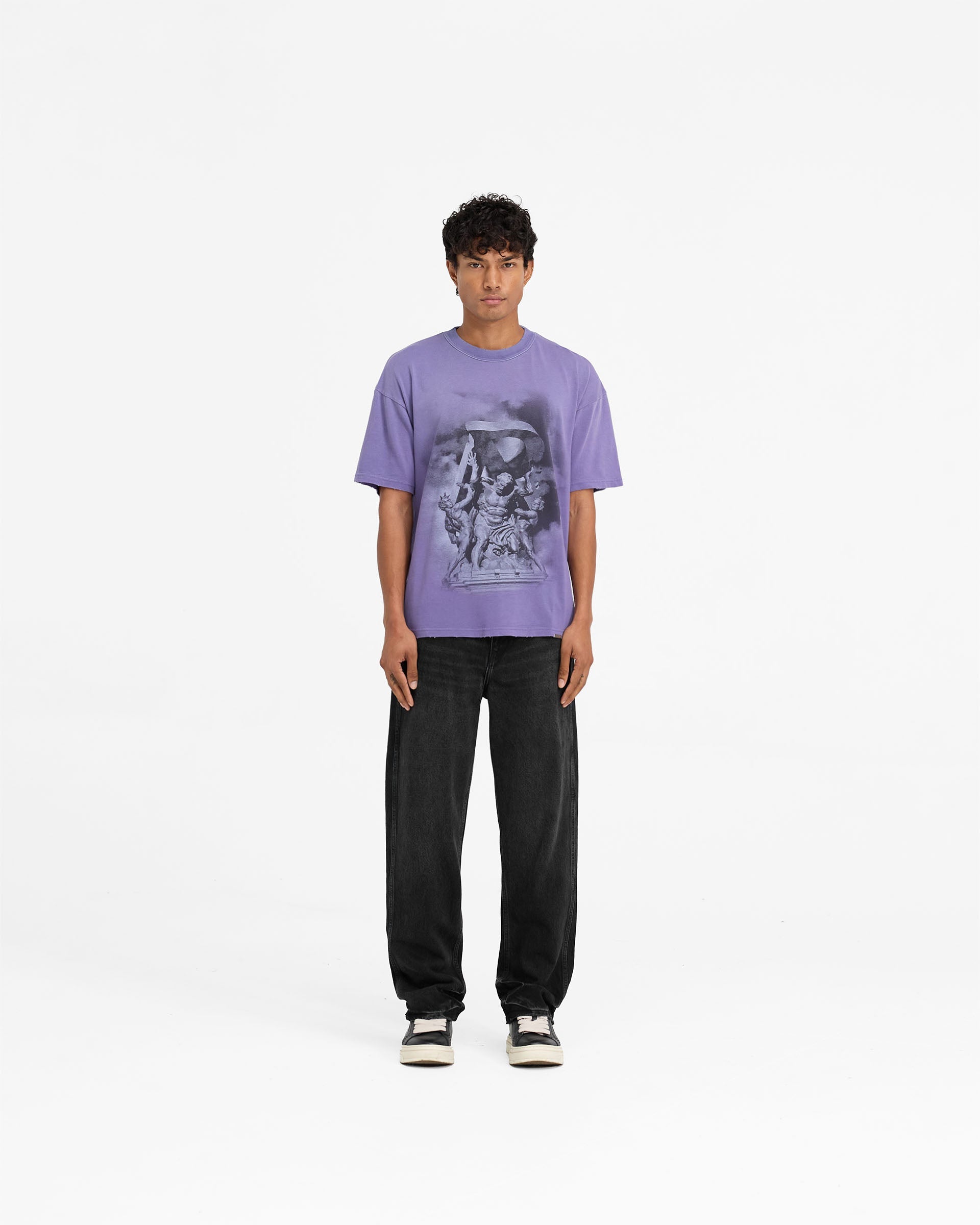 Introducing the Atlas T-Shirt in Purple, a luxury slightly oversized t-shirt, crafted from medium weight cotton. The Atlas T-Shirt features a mix of puff print and screen print to the back, with our screen printed Atlas graphic to the front. It is finished with nibbling details to the neckline, sleeve end and hem, with a Represent metal bar logo to the hem.