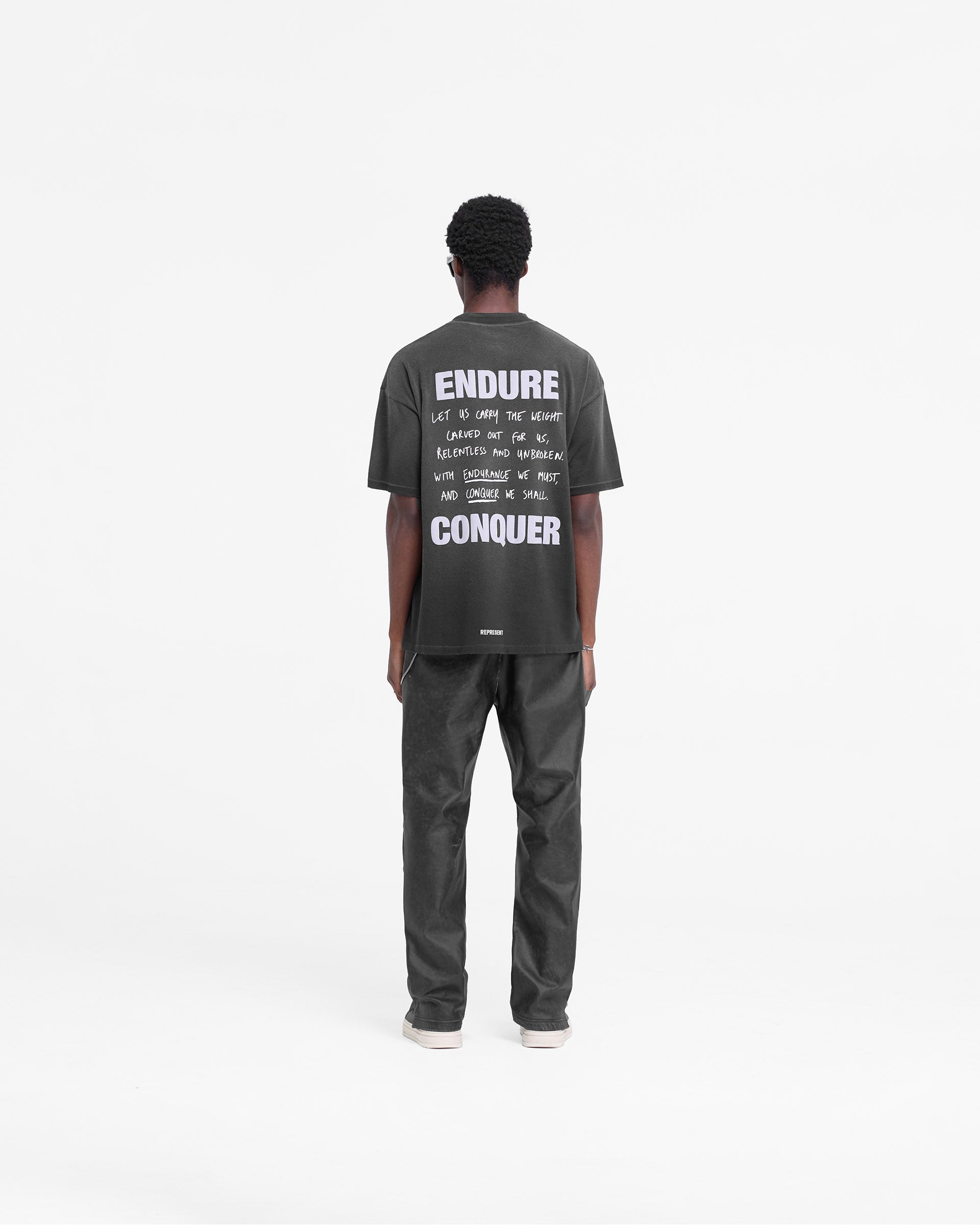 Introducing the Atlas T-Shirt in Stained Black, a luxury slightly oversized t-shirt, crafted from medium weight cotton with a fade out wash. The Atlas T-Shirt features a mix of puff print and screen print to the back, with our screen printed Atlas graphic to the front. It is finished with nibbling details to the neckline, sleeve end and hem, with a Represent metal bar logo to the hem.