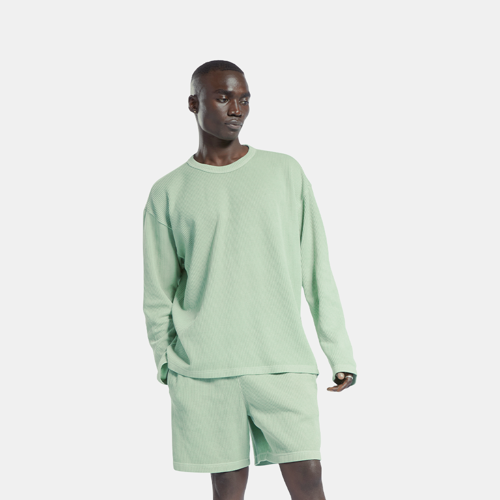 Natural dye, effortless style. This men's Reebok sweatshirt brings a neutral tone to your look with a dye that utilises colours that come from natural earth pigments and minerals. Loose-fitting waffle material weaves lasting comfort into every aspect of your day. Our cotton products are entirely sourced through sustainable cotton farming and are made with at least 50% Better Cotton.