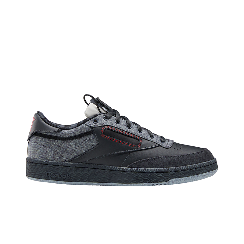 Lace up a look inspired by the Netflix heist crime drama "La Casa de Papel" (English: "Money Heist"). These men's Reebok Club C Shoes are inspired by the "The Professor" and feature key details referencing his iconic eyeglasses, tie and earpiece. The window box features a rub-away material that changes colour to gold with wear.