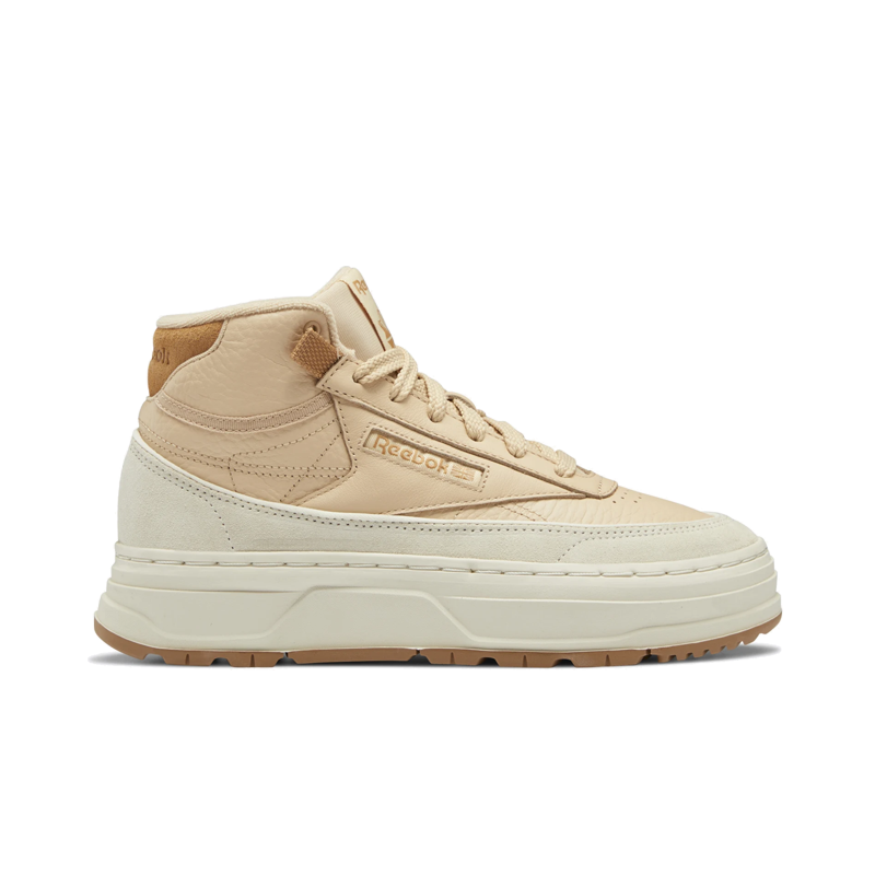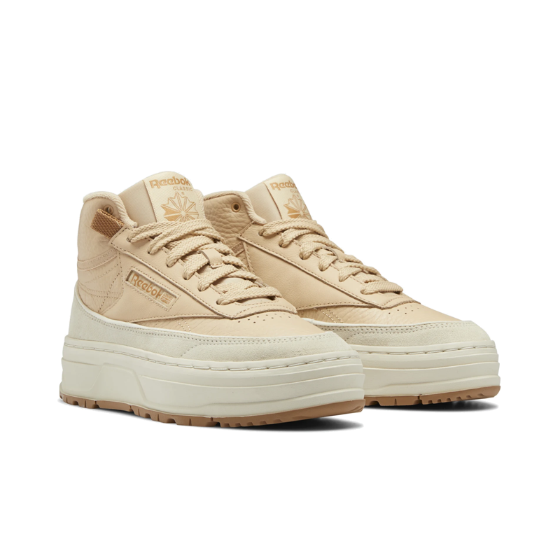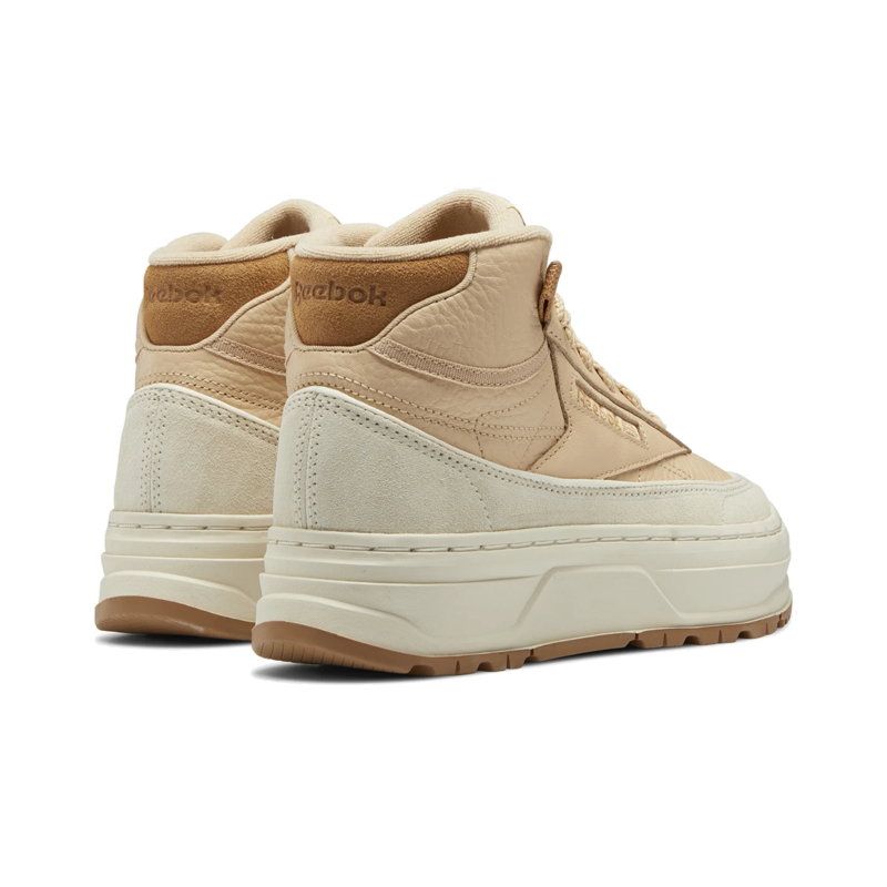 These women's Reebok shoes prove it's possible to have a look that's both fierce and chic. A thick outsole tread, suede mud guard and mid-cut collar echo outdoor style. Supple leather and soft suede elevate your new go-to shoe. The platform midsole takes you to new heights — literally. A neutral colour palette means you can pair them up with almost anything for extra versatility.
