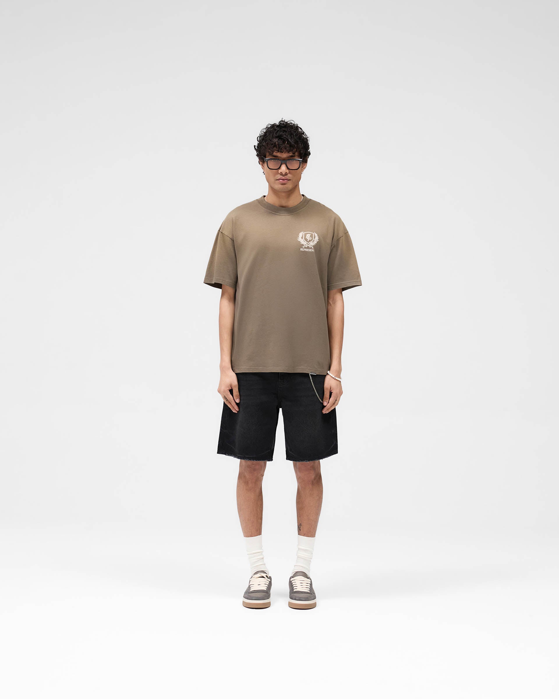 Introducing the Crest T-Shirt in Dark Taupe, a premium graphic tee with a refined aesthetic, crafted for everyday wear. Designed with a signature fade-out wash, this piece delivers a vintage-inspired look with a worn-in feel. The puff print and screen print graphics elevate the design, featuring Overdrive branding on the back and a detailed Crest logo on the chest.