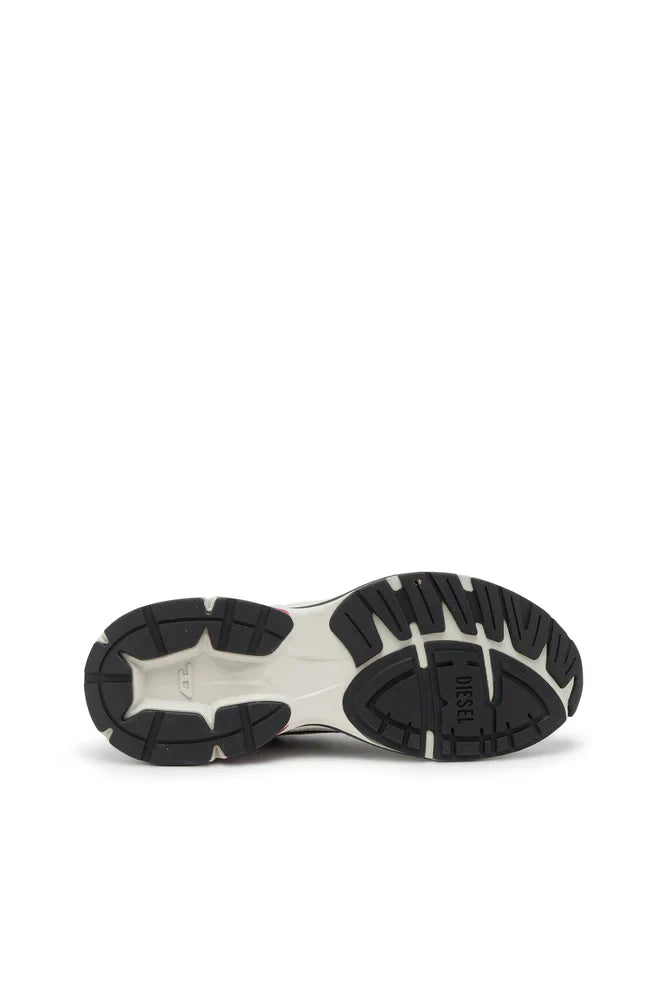 Men's trainers built from breathable mesh, featuring slightly squared-off toes and a lace-up closure. A graphic reimagining of a running silhouette, these sporty shoes are coated from front to back with sweeping two-tone lines. The striped design of the upper is seamlessly incorporated into the sole, creating an all-over dynamic look.
