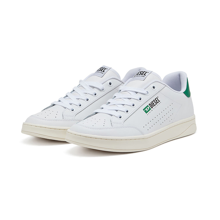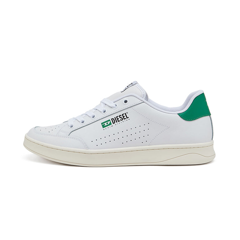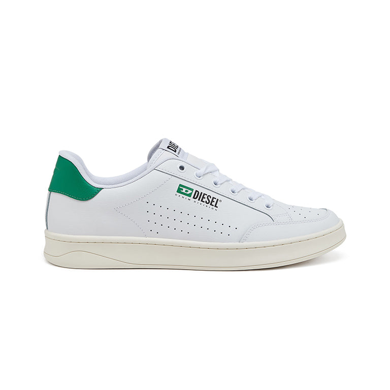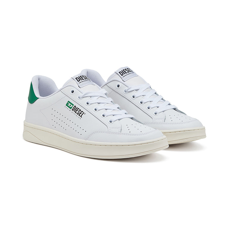 Men's block-colour trainer built from tonal leather and nylon. Their sleek low-top silhouette is elevated with side perforations and set on a rubber cupsole. Branded with a debossed Diesel For Successful Living logo on the side and D initial on the heel tab.