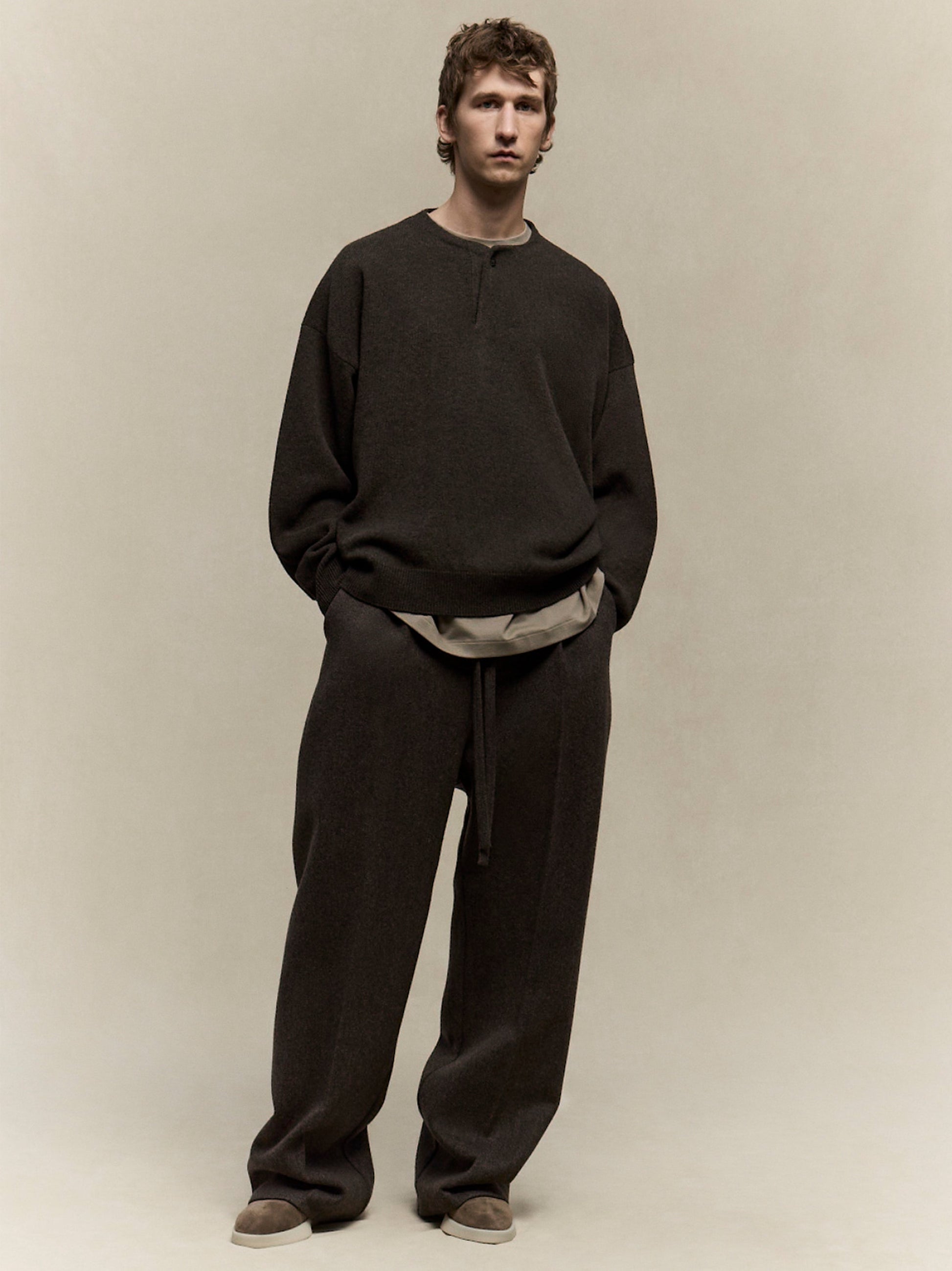 The Eternal Knit Henley is crafted in Italy from 100% extra fine baby merino wool. This modern henley features relaxed proportions, including dropped shoulders and a rounded neckline. Its henley placket design enhances its sleek and contemporary look. A Fear of God label is stitched at the back of the collar.