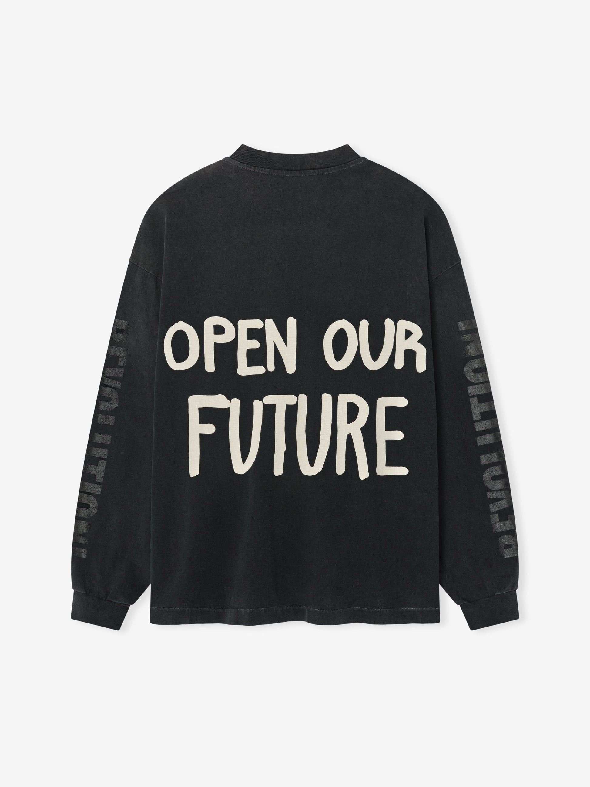 The For All People Long Sleeve Tee is crafted in the USA from 100% heavyweight cotton jersey and features a garment wash with a sunfade treatment for an authentic vintage appearance. The hand-printed graphics are inspired by the civil rights movement. This rib-knit crewneck tee has a relaxed fit with drop shoulders.