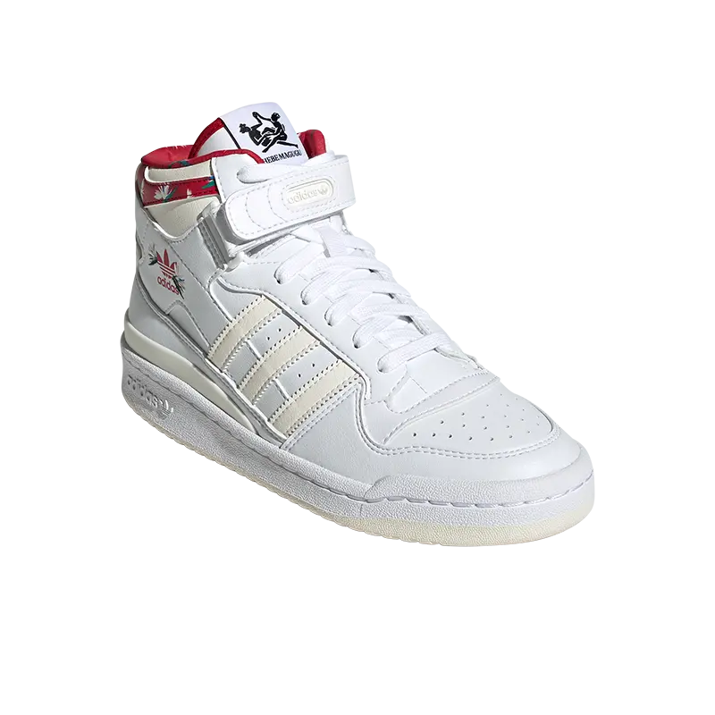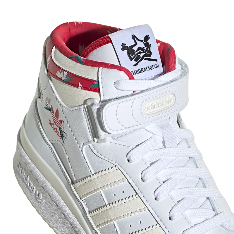 A collaboration with South African fashion brand Thebe Magugu, these adidas Forum shoes spread a message of unity. You'll find inspiration from the bird-of-paradise print on this iconic basketball silhouette — a representation and celebration of unbridled joy and hope. Made with a series of recycled materials, this upper features at least 50% recycled content. This product represents just one of our solutions to help end plastic waste.