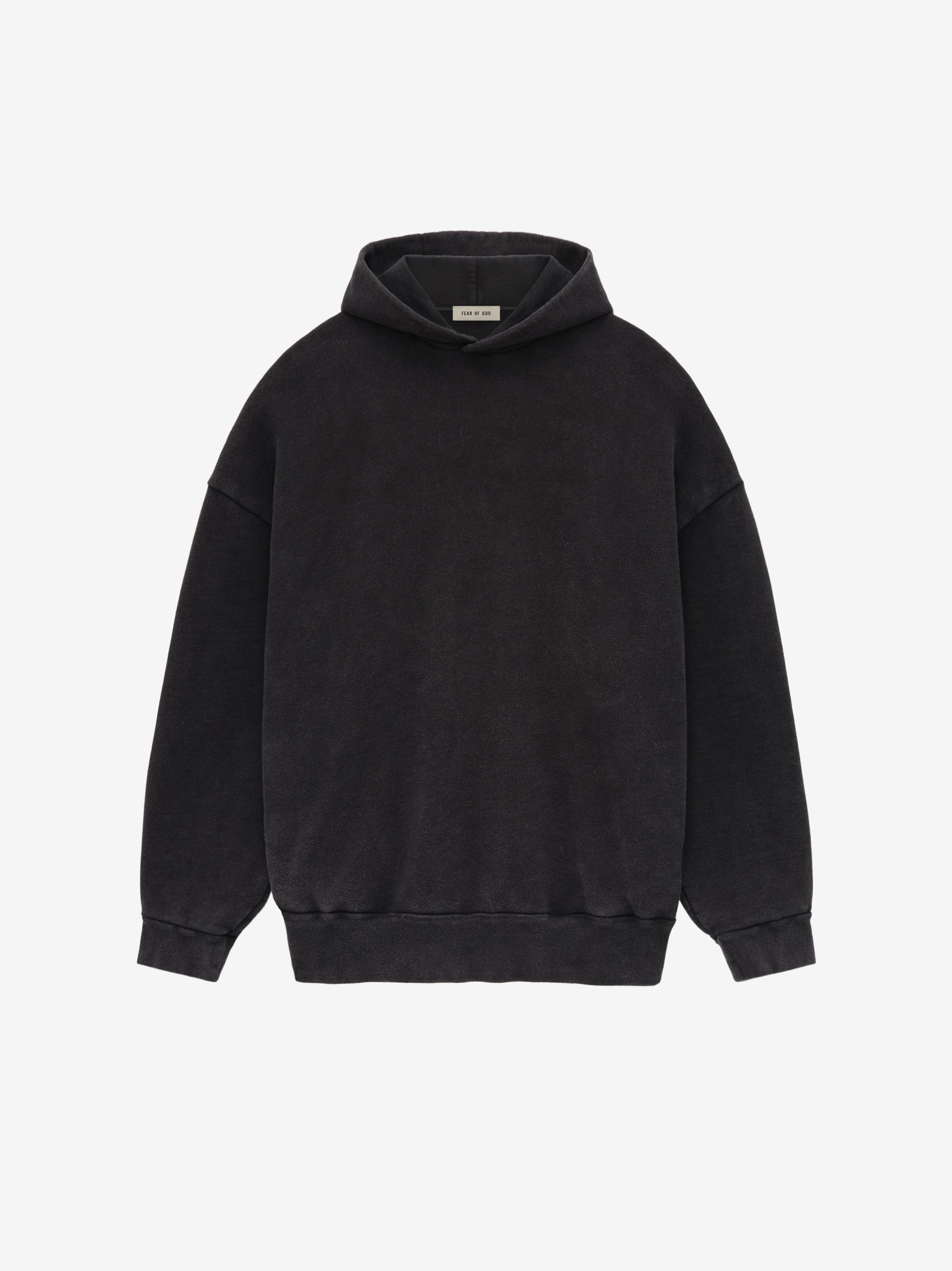 The 8 Overlapped Hoodie is made in Portugal from 100% cotton French terry with a vintage wash to contribute depth and softness. The signature Fear of God fit is evident with a relaxed silhouette, dropped shoulders, and overlapped neckline that leads into the double-layered hood. Additional details include a printed number 8 on back, side pockets, rib-knit cuffs, waist hem, and leather Fear of God label.
