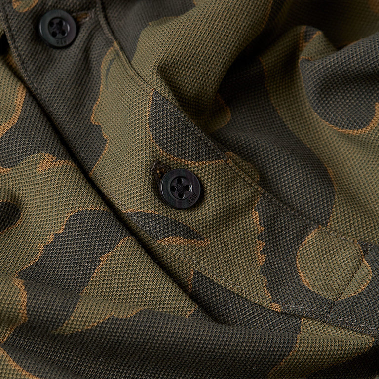 Slim polo Dunda features a ribbed collar and sleeve hems. An authentic polo closure and side slits make this polo complete. An allover graphic print is added.