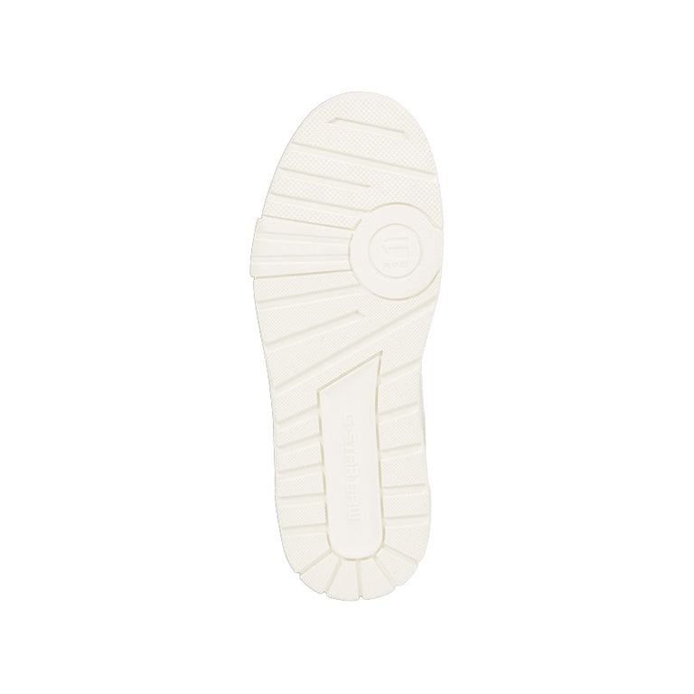 Sneaker Lhana III is designed in a low cut and offers flat laces. The raised sole shows a rough structure. The contrast in color and texture add detail.