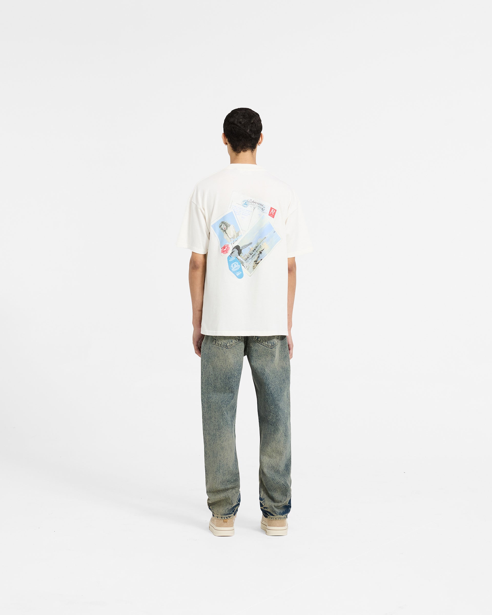 Introducing the Girls of Summer T-Shirt in Flat White, a slightly oversized t-shirt crafted from luxury medium weight cotton. The girls of summer t-shirt features our girls of summer graphic to the front and back, with a mix of high gloss, screen print and puff print applications. It is finished with our Represent metal bar logo to the hem.