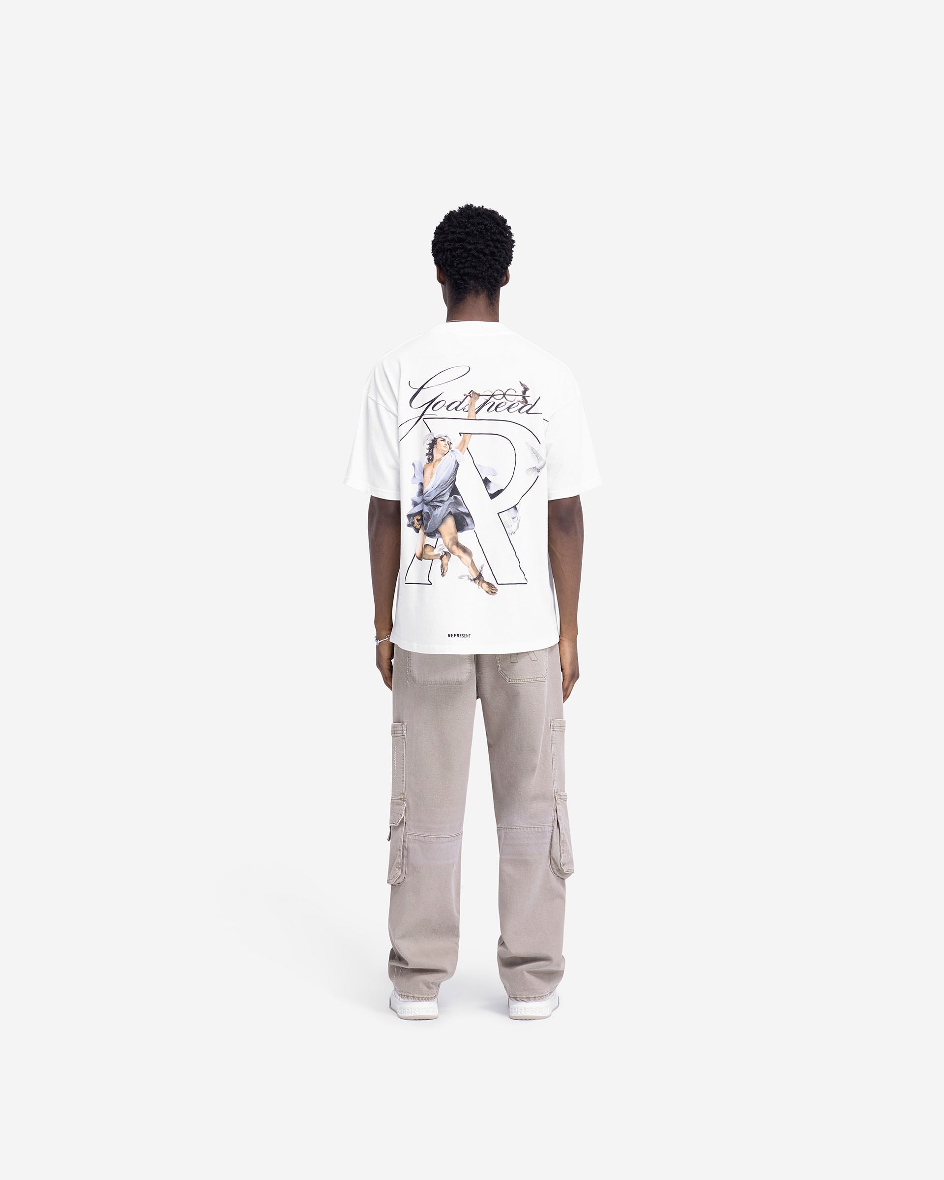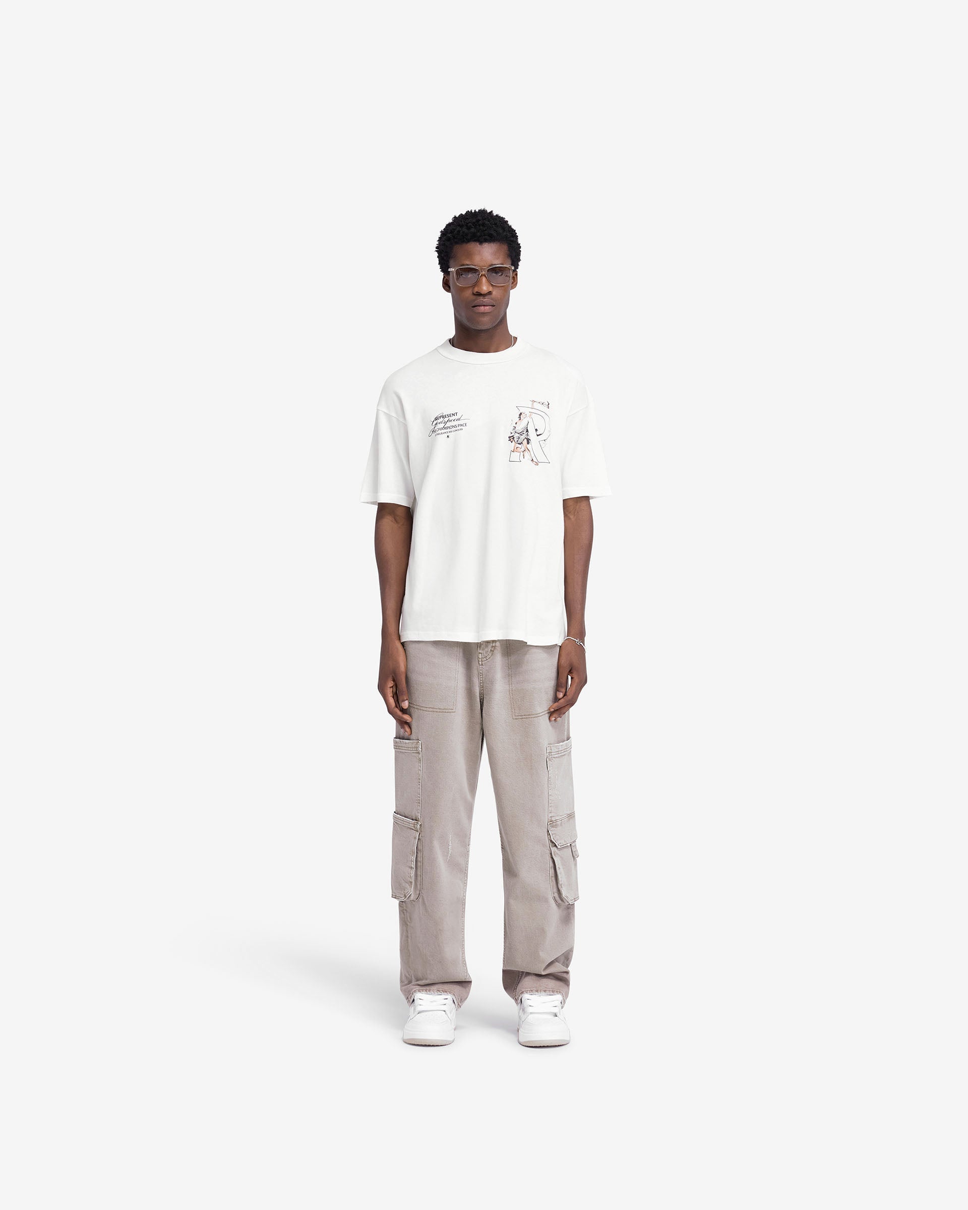 Introducing the Hermes T-Shirt in Flat White, a luxury oversized t-shirt crafted from medium weight jersey cotton. The t-shirt features a high density screen print graphic to the front and back with a Represent metal bar logo to the hem.