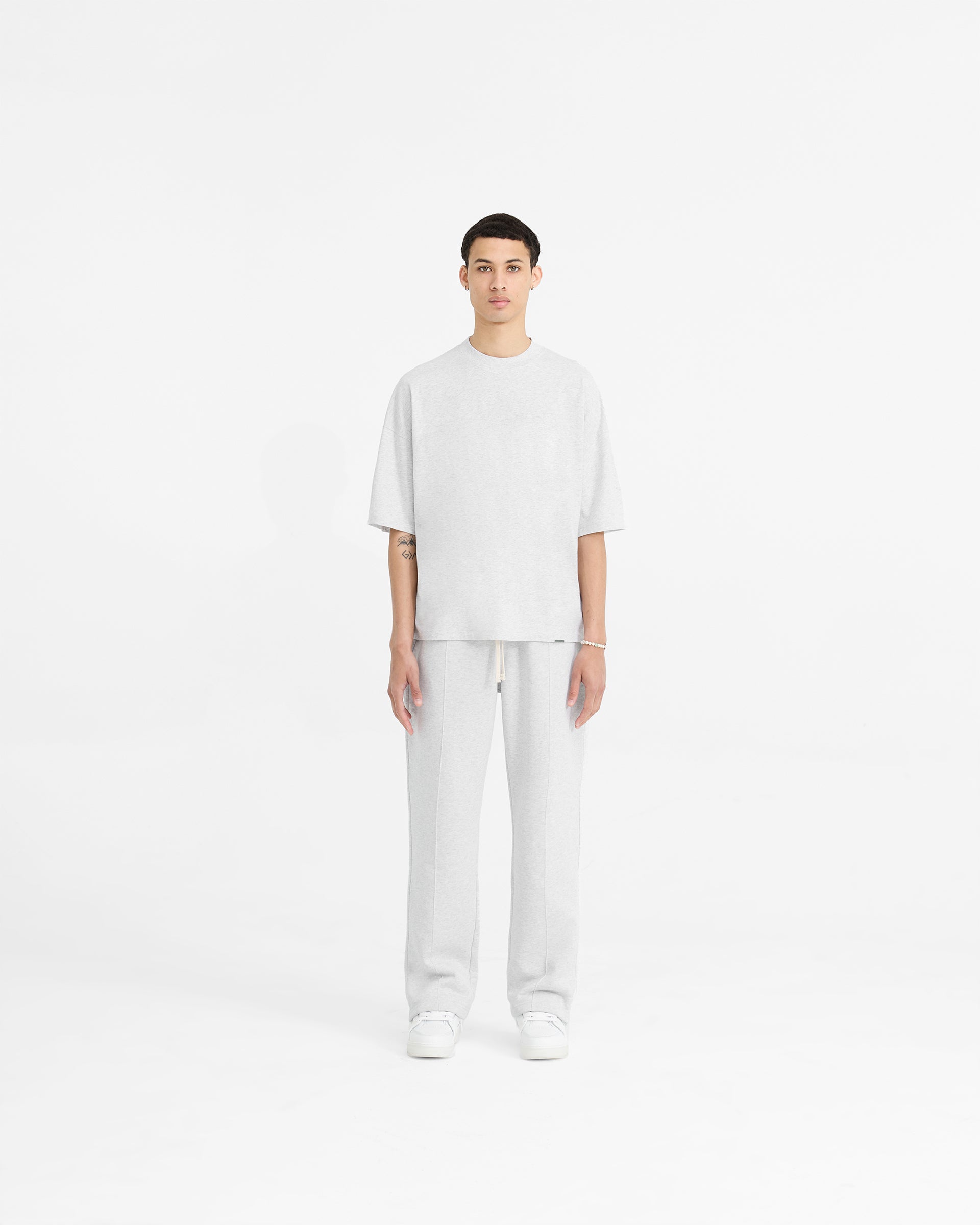The Initial Boxy T-Shirt in ice grey marl has a super oversized and boxy cropped body fit. Crafted from a heavier 230gsm jersey cotton, it has a 1x1 rib to the collar, finished with a Represent metal bar to the hem and embroidered Initial to the back neck.