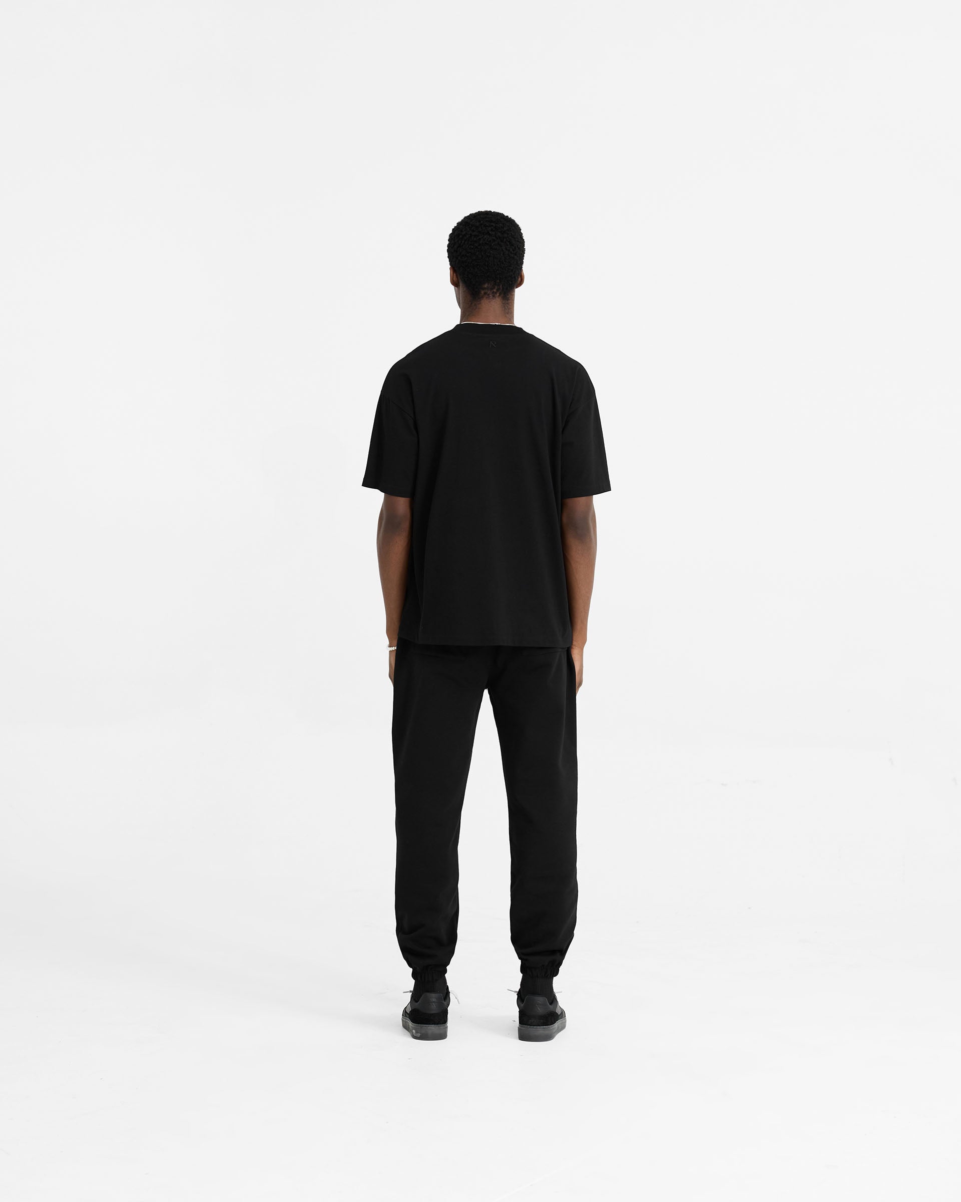 The Initial Oversized T-Shirt in black follows the same fit block as our Owners’ Club t-shirts, with a slightly oversized fit. Crafted from 180gsm jersey cotton. It has a 1x1 small rib to the collar, and is finished with an embroidered Initial to the back neck and Represent metal bar logo to the hem.