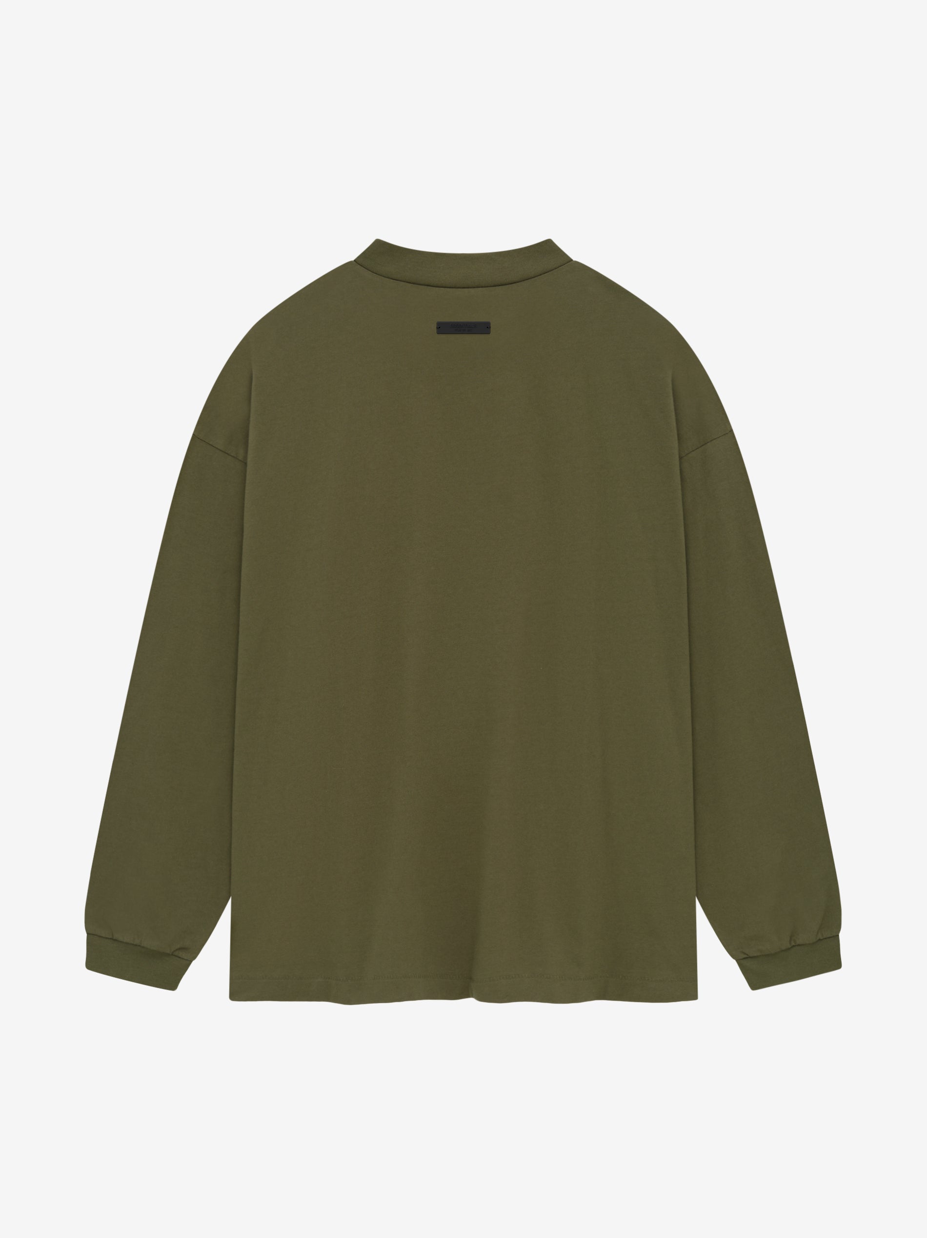 The Essentials Long Sleeve Tee is made from core 100% cotton jersey. The crewneck tee fits relaxed in the body with dropped shoulders, and rib-knit cuffs. The "Fear of God Essentials" collegiate graphic is screen printed on the center front, and the Essentials Fear of God rubberized label is at the back collar.