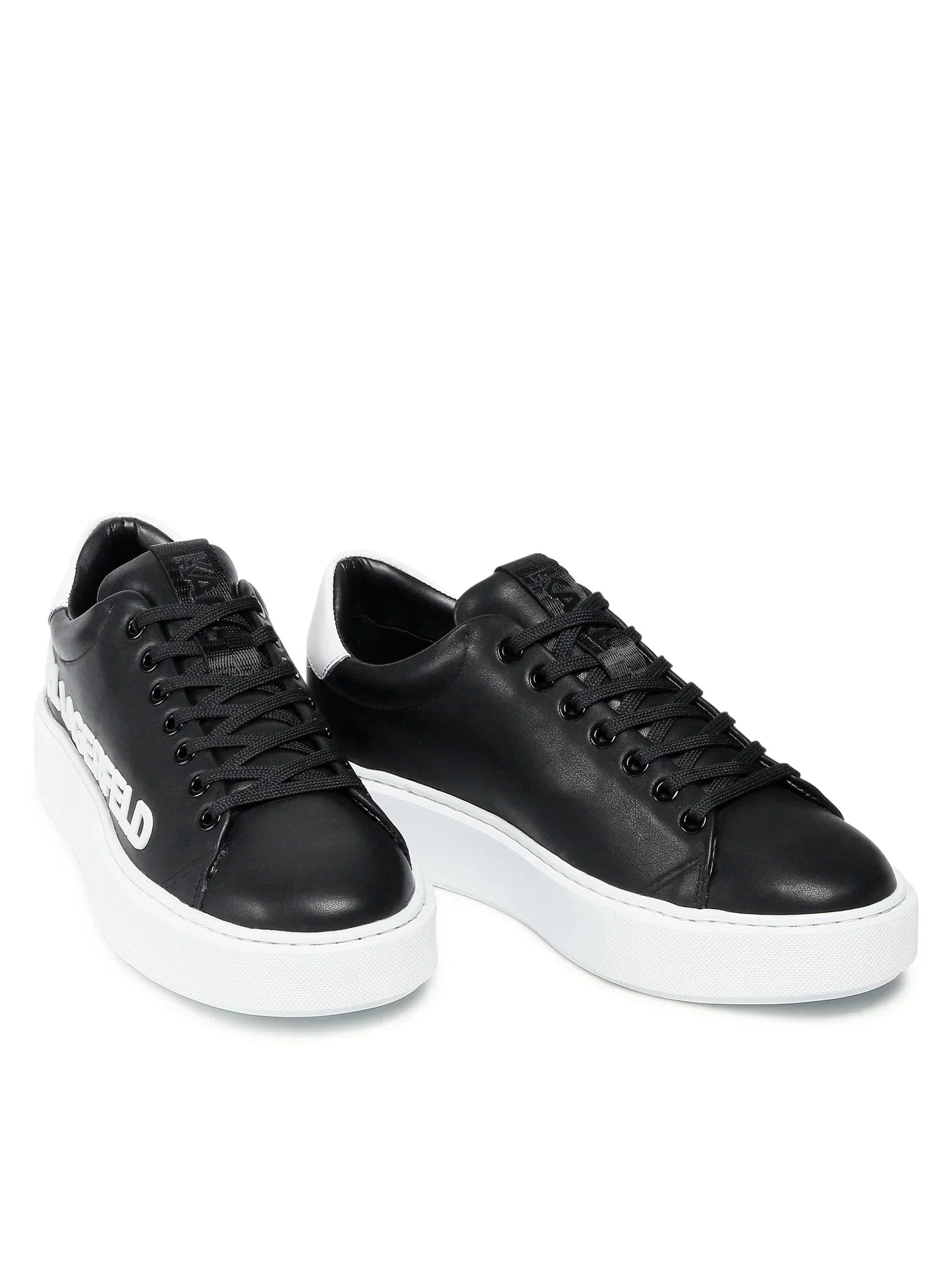Introducing the Black and white Karl Lagerfeld Maxi Kup Sneakers. These luxurious sneakers provide both style and comfort with their sleek design and cushioned soles. Perfect for any occasion, these Black/White Karl Lagerfeld shoes will elevate your wardrobe and provide the perfect finishing touch to any outfit.
