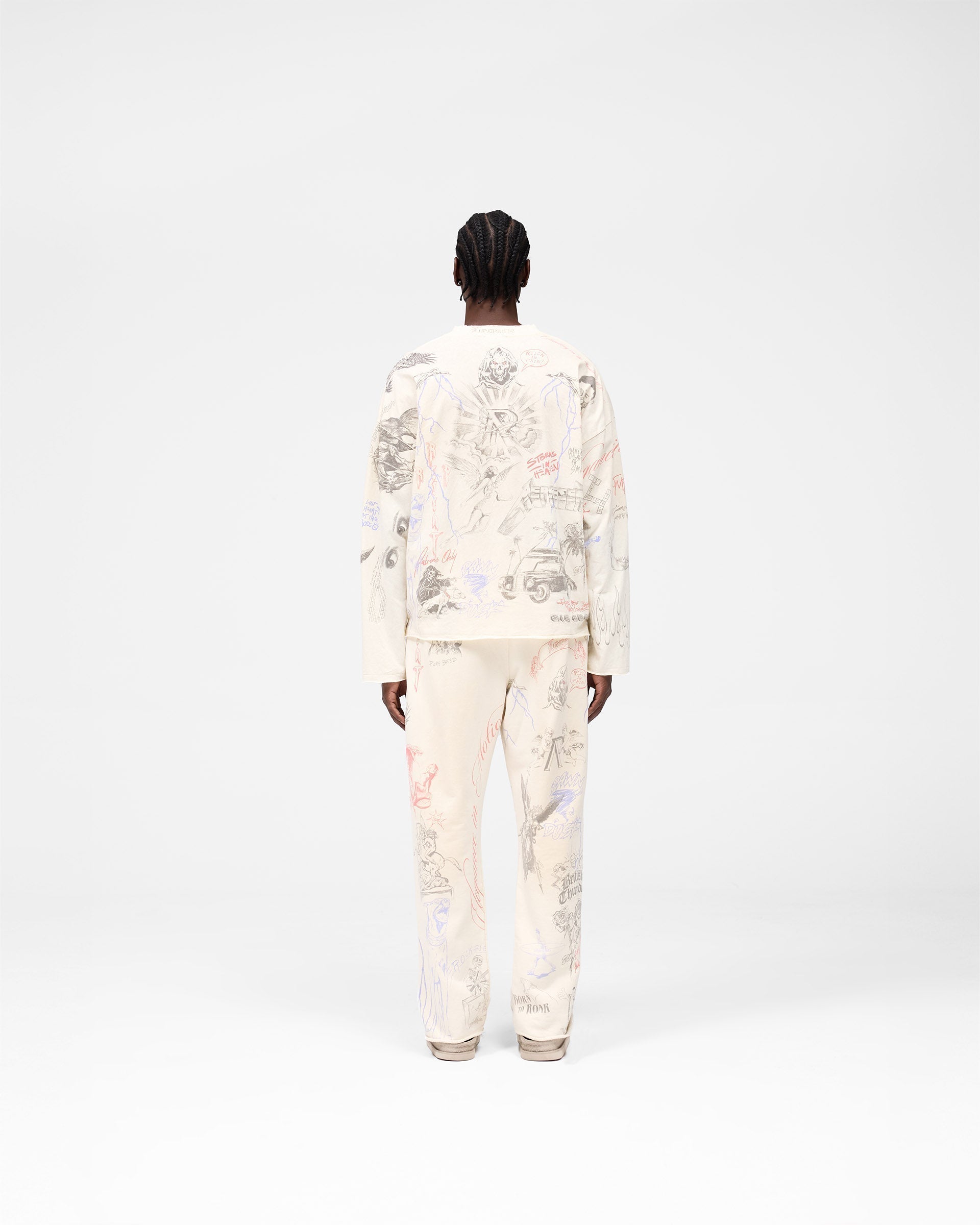 Introducing the Legacy Long Sleeve T-Shirt in Buttercream, a lightweight statement piece crafted from the Represent sketchbooks. Crafted from a breathable cotton-hemp blend and finished with a pigment spray wash, this boxy silhouette carries a story-rich print, a tribute to 14 years of design evolution.