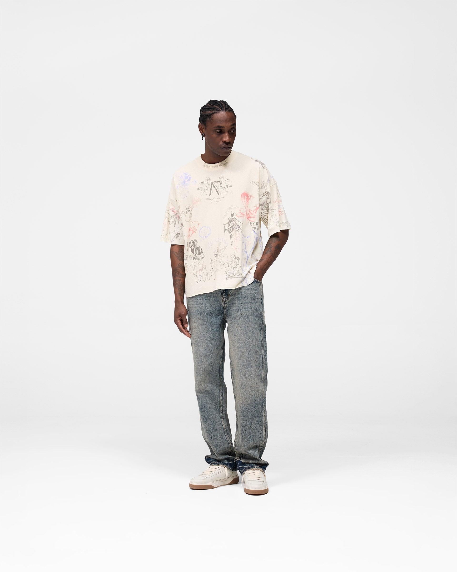 Introducing the Legacy T-shirt in Buttercream, a statement piece crafted from the Represent sketchbook archives. Crafted from a breathable cotton-hemp blend and finished with a pigment spray wash and finished with a silicone wash, this T-shirt serves as a tribute to 14 years of Represent design.