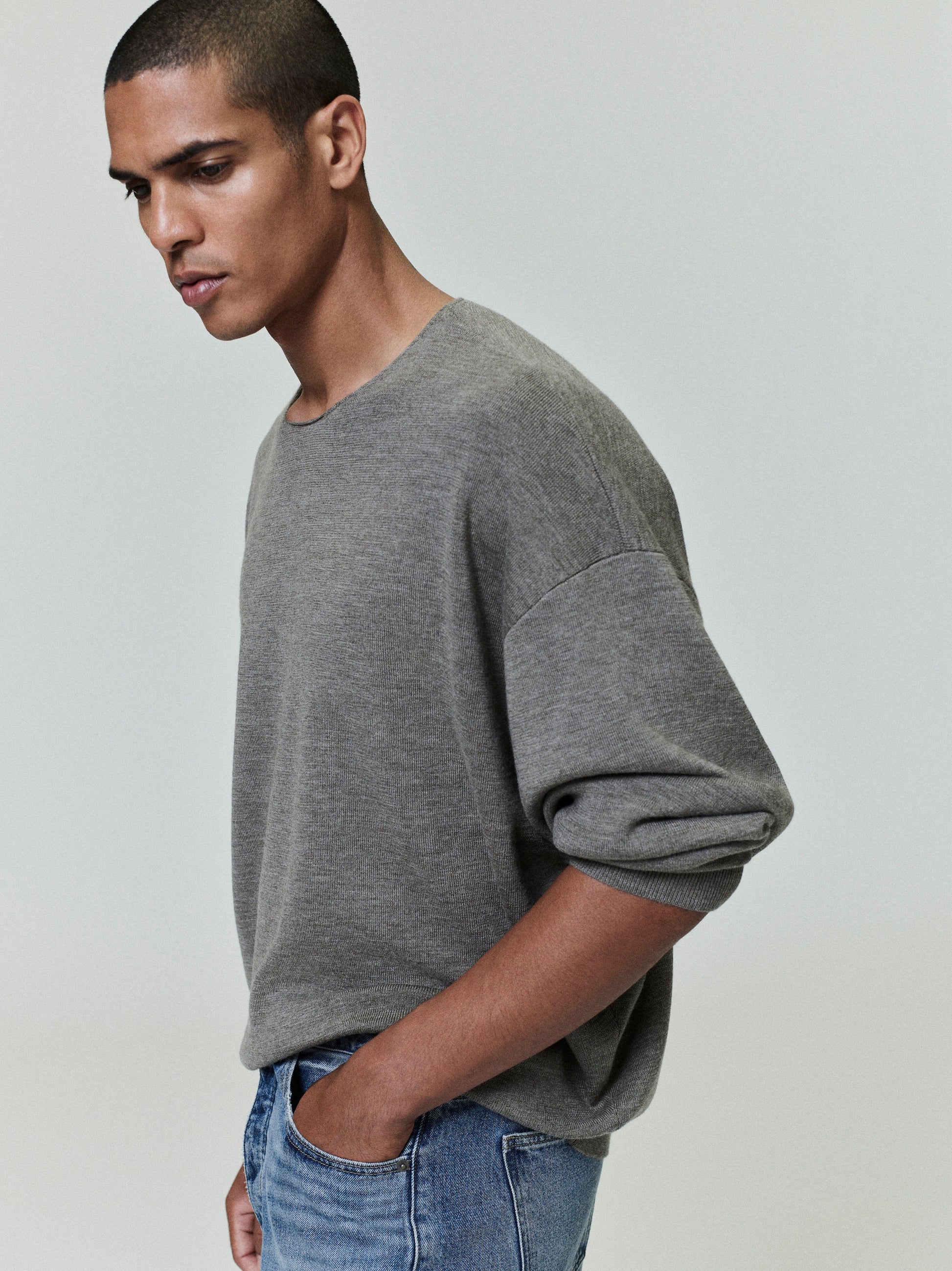 The Merino Crewneck Sweater is made from 100% merino wool. The fit is relaxed with drop shoulders, rib-knit cuffs and waist hem. Additionally, a "Fear of God Essentials" rubberized label is stitched at the back collar.