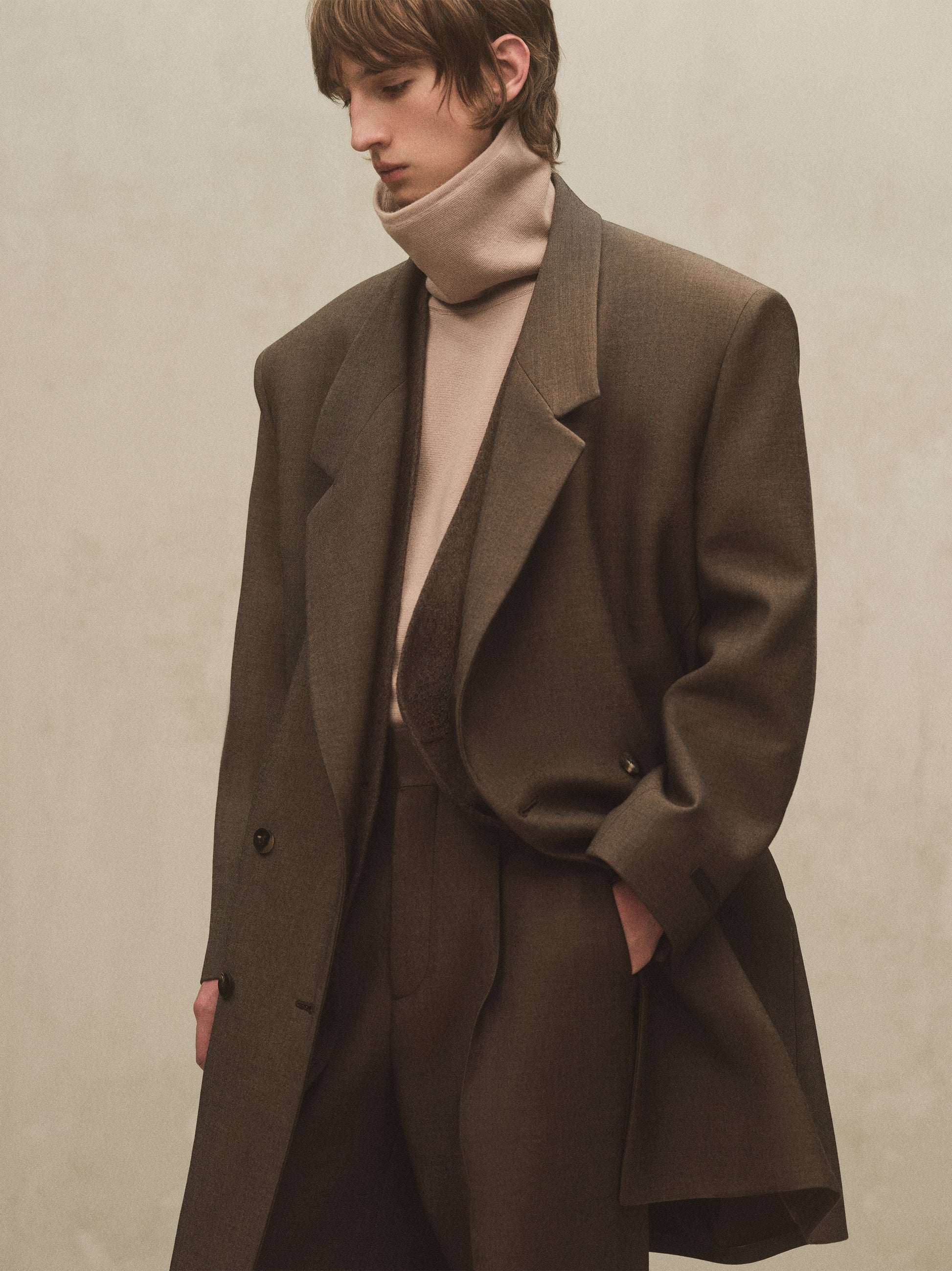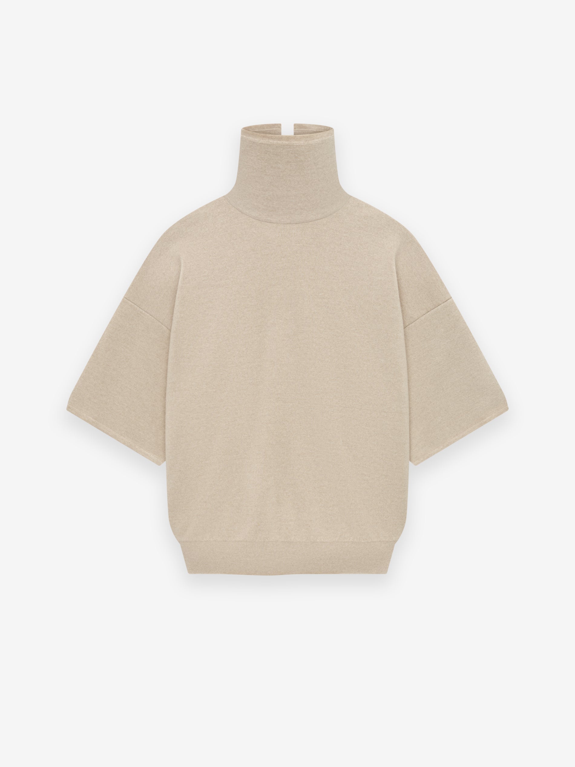 The High Neck Tee is made in Italy from Merino knit for a comfortable, elevated underpinning. The piece features the brand's signature elements in relaxed fit with dropped shoulders, high neckline with slit, and a Fear of God leather label stitched at the back collar.