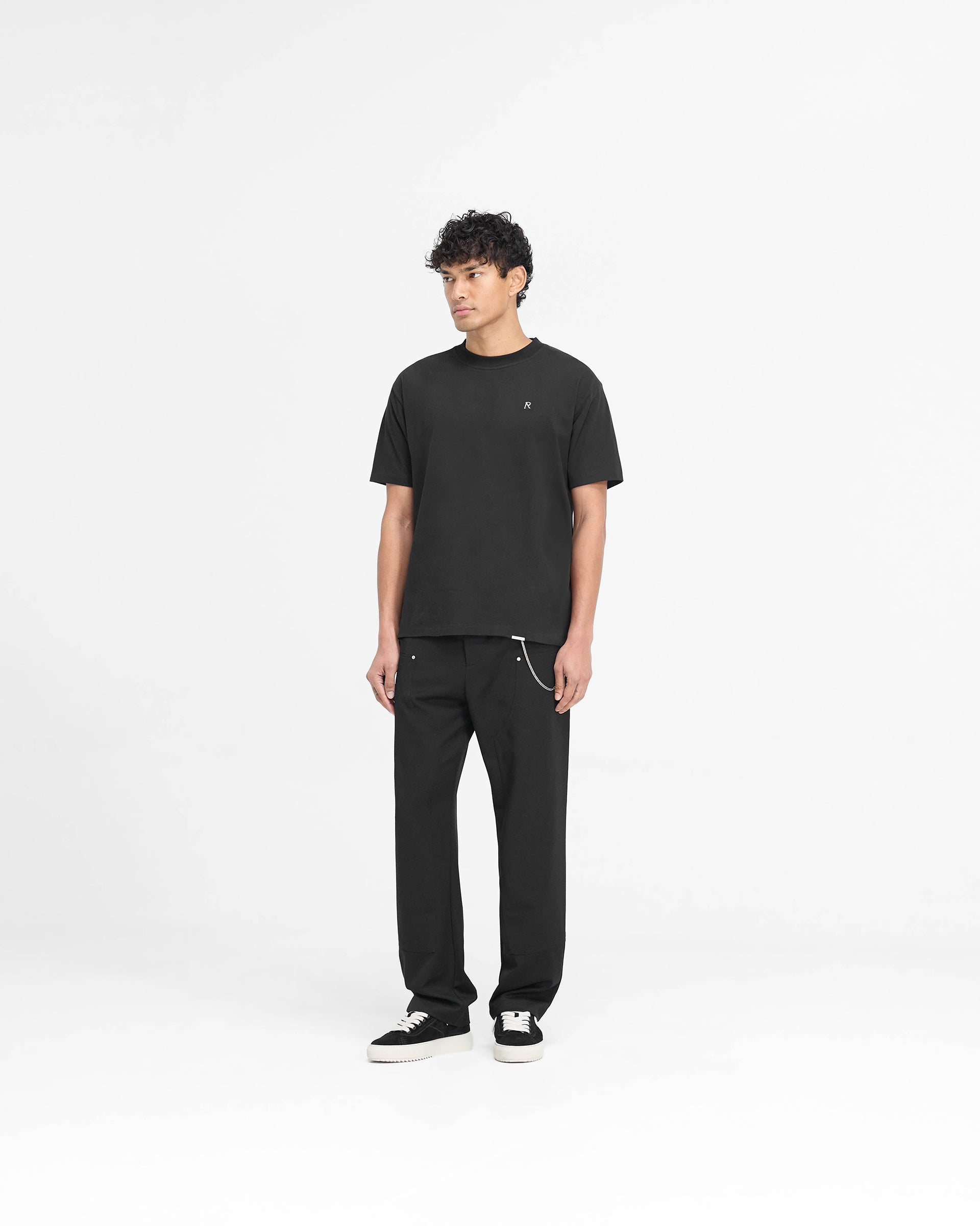 Introducing the Metal Initial R T-Shirt in Jet Black. In our closest fitting silhouette, with a regular fit to the chest and hem, and slimmer and shorter sleeves than our mainline, the t-shirt is crafted from jersey cotton with a carbon finish for a super soft hand feel. It has a blind hem for a minimalist look. The t-shirt showcases our metal Initial logo to the chest. It is finished with our Represent metal bar to the hem.