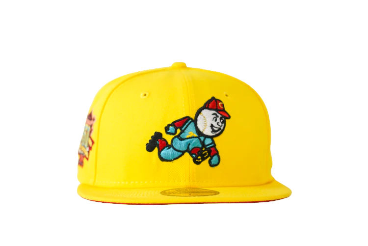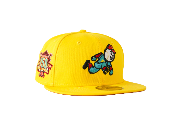 This commemorative Custom New Era hat captures the 150th Anniversary of the Cincinnati Reds with a timeless yellow color way. This fitted hat is complete with the classic New Era branding, ensuring quality and style.