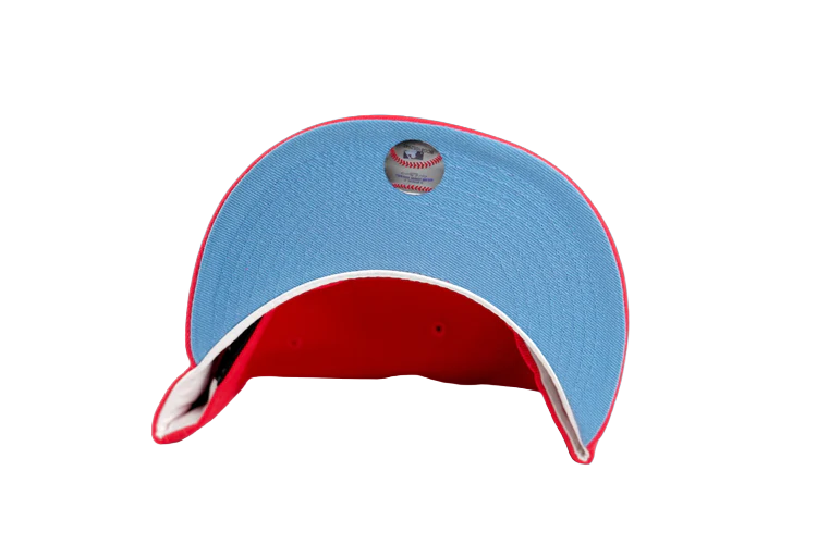 Introducing the Custom New Era 59Fifty Detroit Tigers 2005 All Star Game Fitted Hat, a fitted cap with an officially licensed Detroit Tigers logo. Featuring a sky blue and lava red color scheme, it is made with genuine New Era materials for superior durability and optimal comfort. Show your team loyalty in style with this one-of-a-kind custom cap.