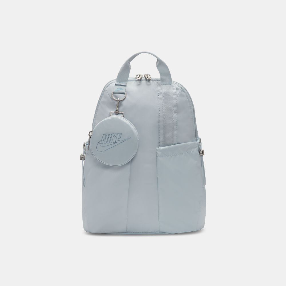 Make your own rules with the Nike Sportswear Futura Mini Backpack. Mixing elegance with convenience, it features a large main compartment with satin lining, decorative chain detailing and durable metal key clips. The removable accessories bag adds the perfect charm while internal pockets help keep you organized. This product is made with at least 50% recycled polyester fibres.