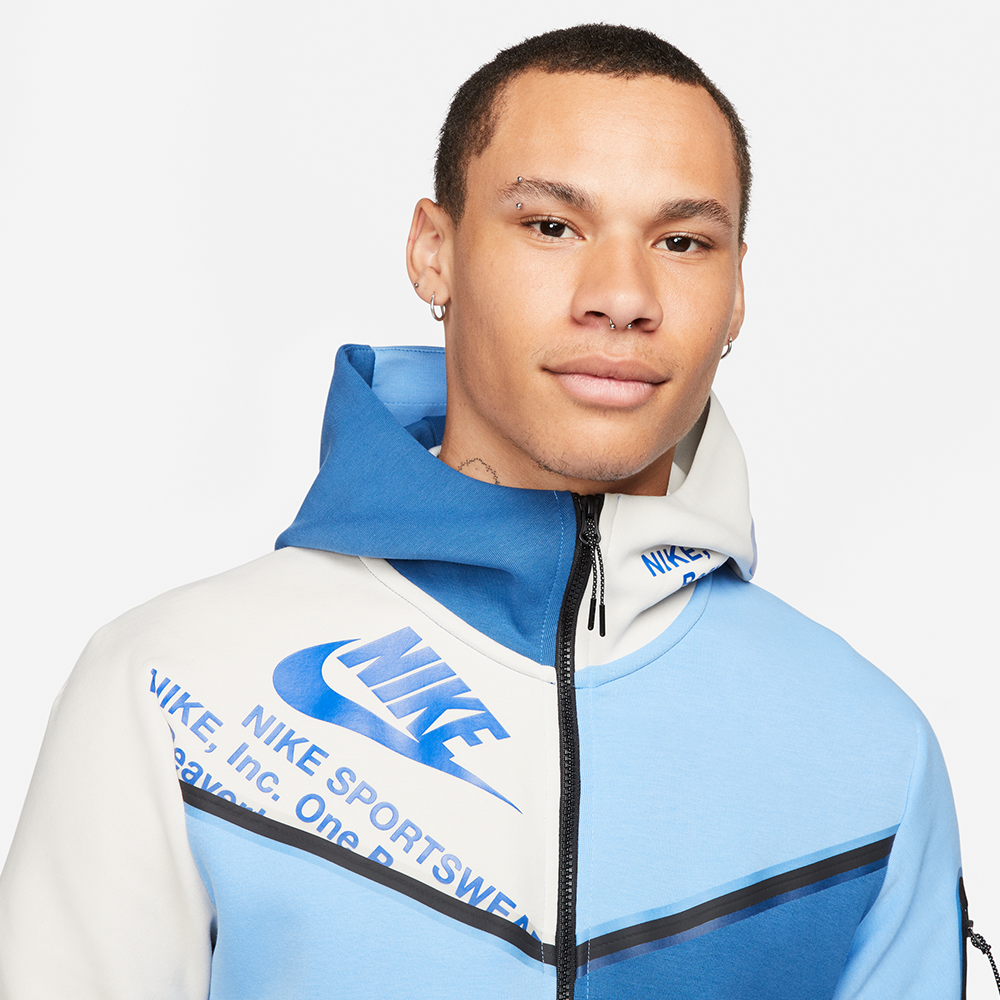A standard-fit zip-up with not-so-standard details, the Nike Sportswear Tech Fleece Full-Zip Hoodie adds warmth to your look without adding bulk. Printed graphics and asymmetrical color-blocking provide an updated look.
