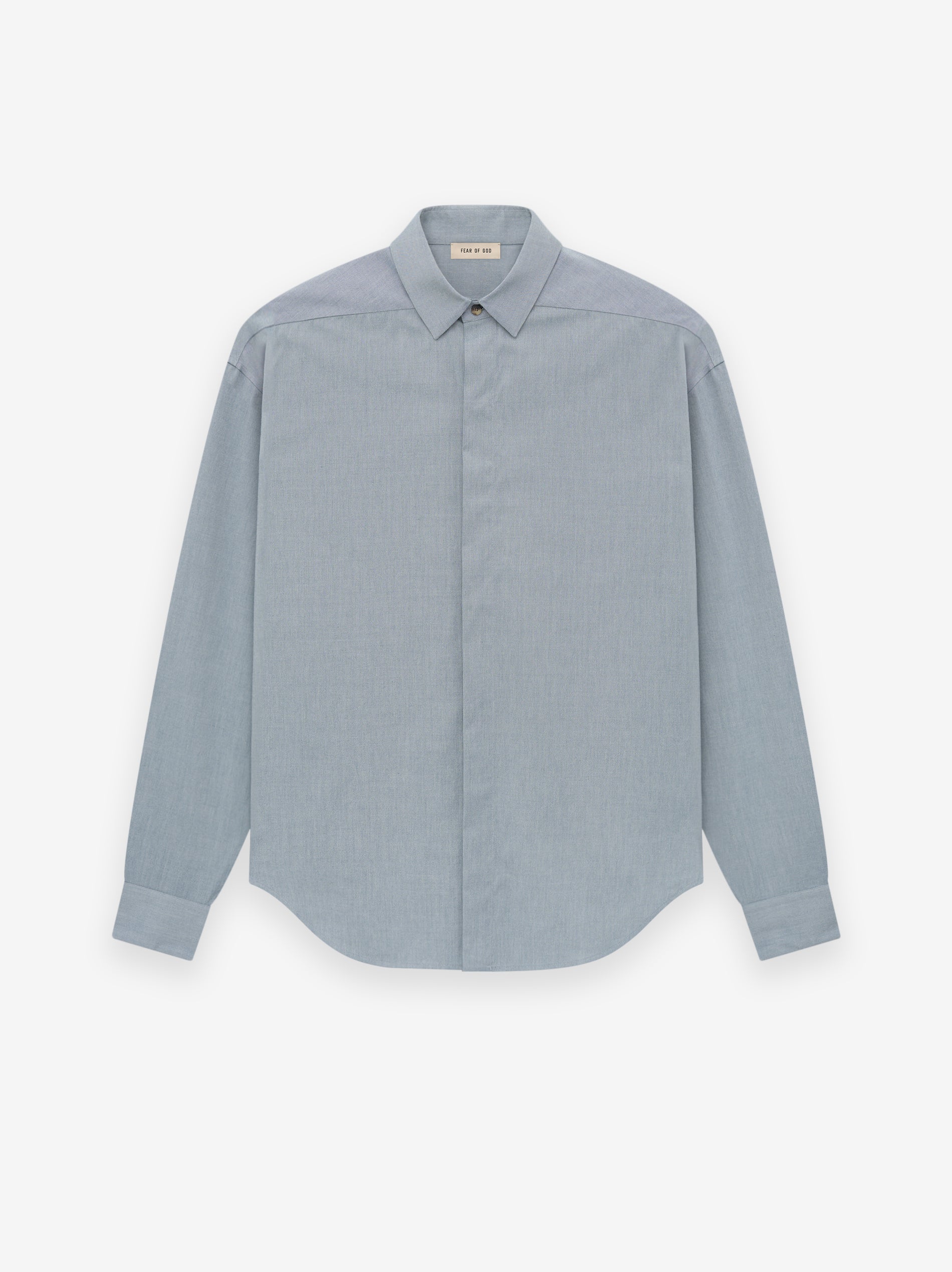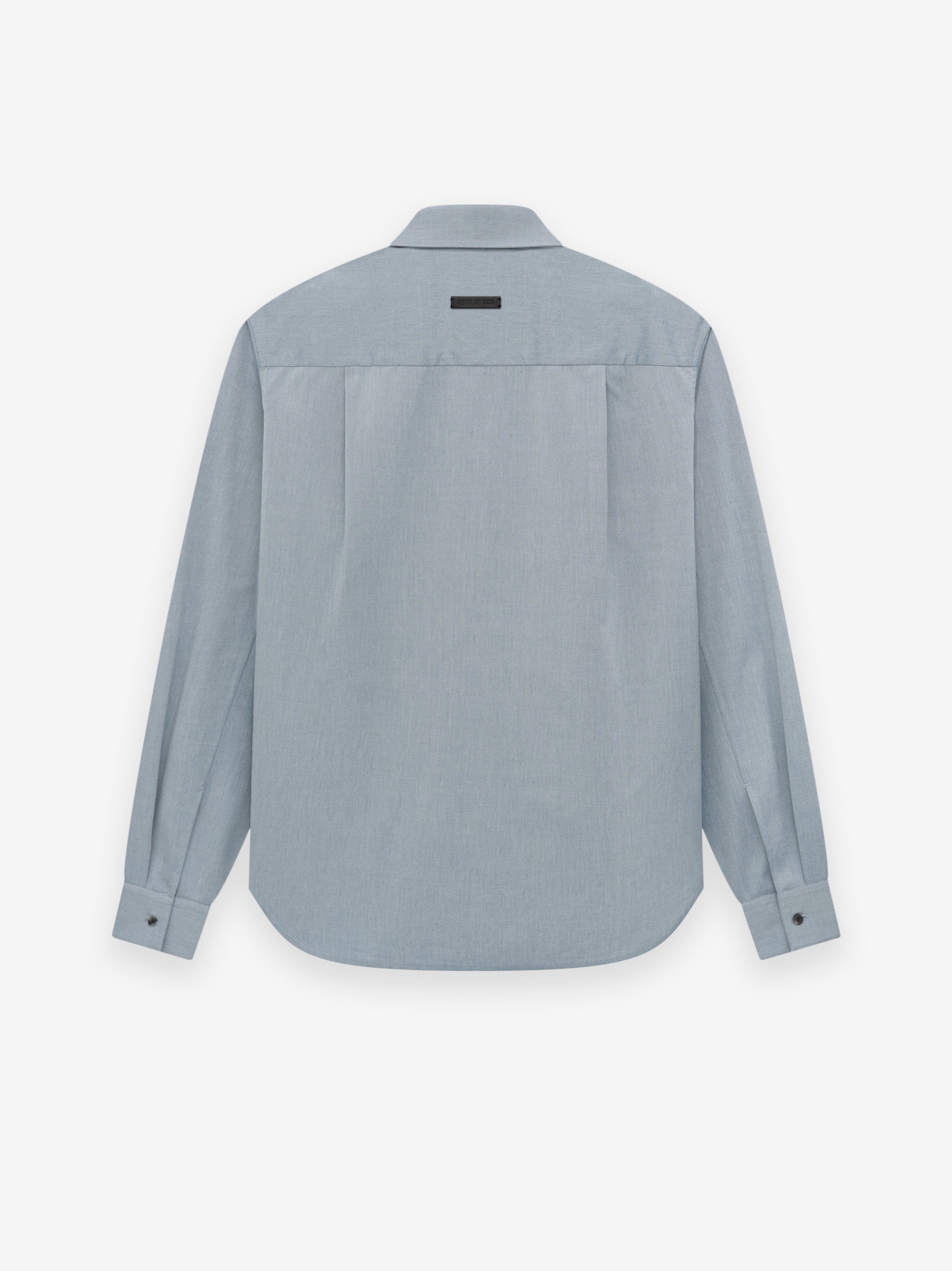 The Button Up Shirt is stitched in Italy from virgin wool-cotton blend with elastane for stretch comfort. The classic Oxford shirt style is remade with a minimalist covered placket with horn buttons. A Fear of God label is stitched at the back collar.