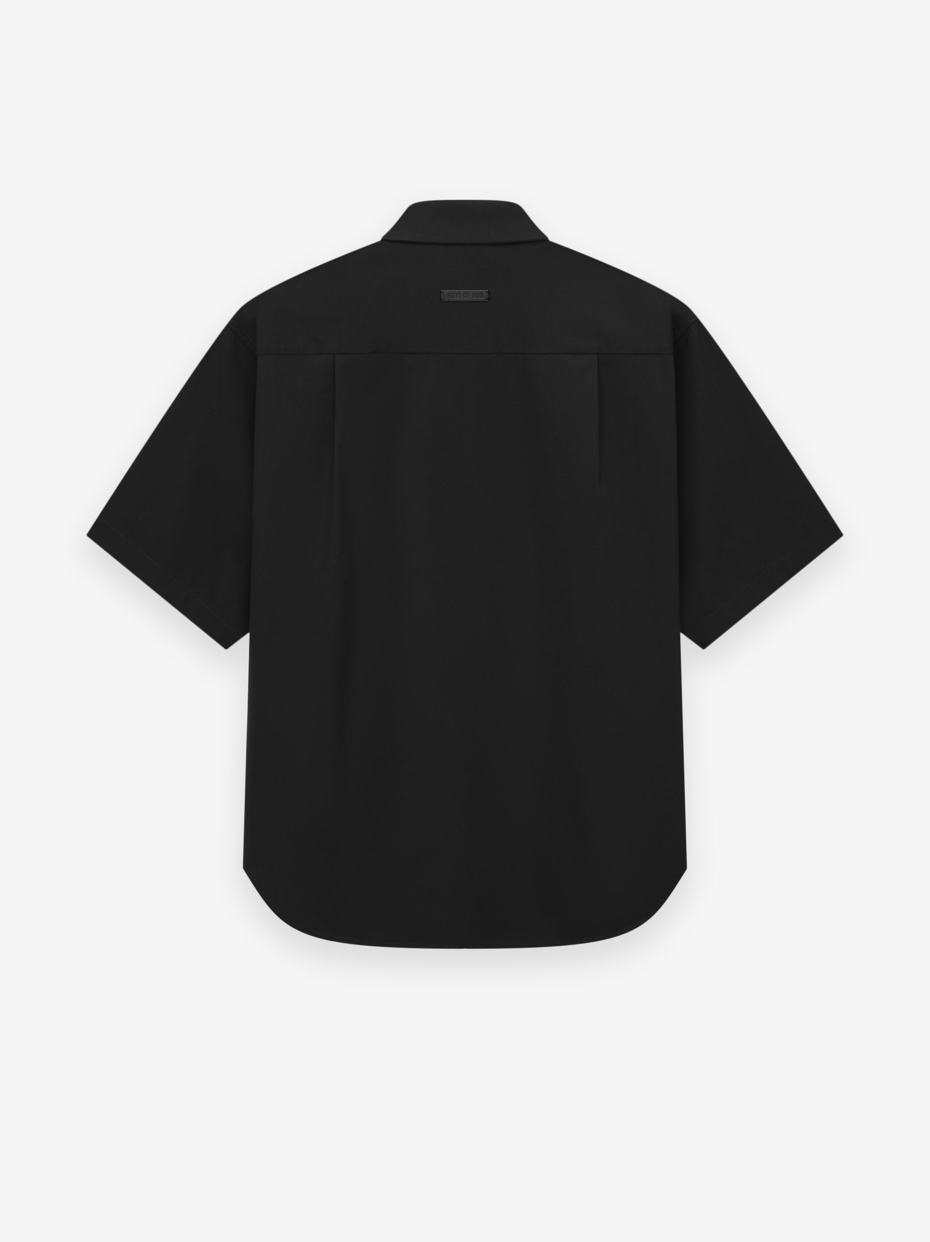 The Short Sleeve Oxford Shirt is stitched in Italy from virgin wool-cotton blend with elastane for stretch comfort. The classic Oxford shirt style is remade with a minimalist covered placket with horn buttons. A Fear of God label is stitched at the back collar.
