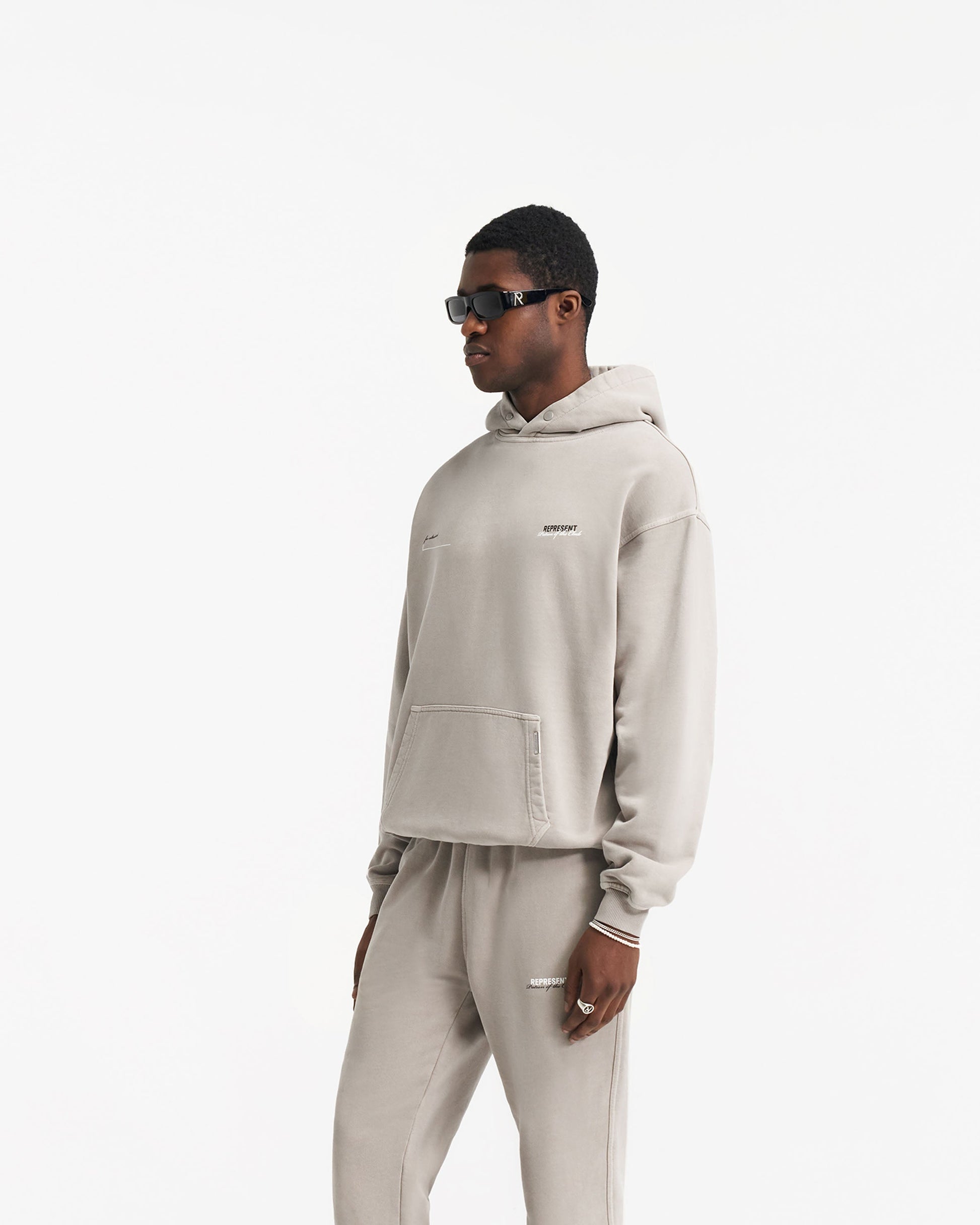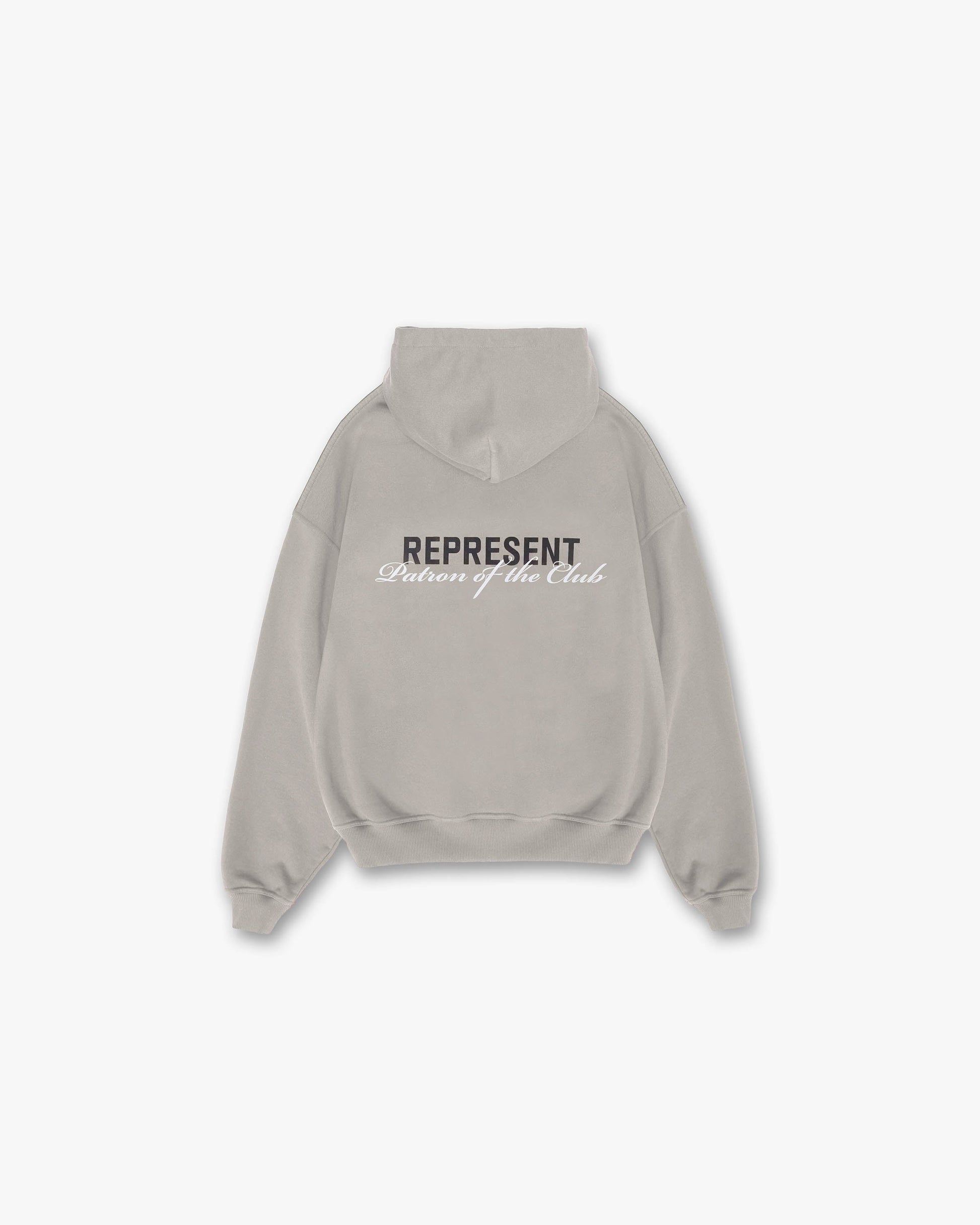 Introducing the Patron of the Club Hoodie in Mudstone, a luxury hoodie with an oversized fit, crafted from heavy weight jersey cotton. Super soft, pre-shrunk and mineral dyed for the ultimate jersey. Ribbed hem & cuffs and featuring our Patron of the Club print to the chest & back. The hoodie is finished with a Represent metal bar to the pocket.