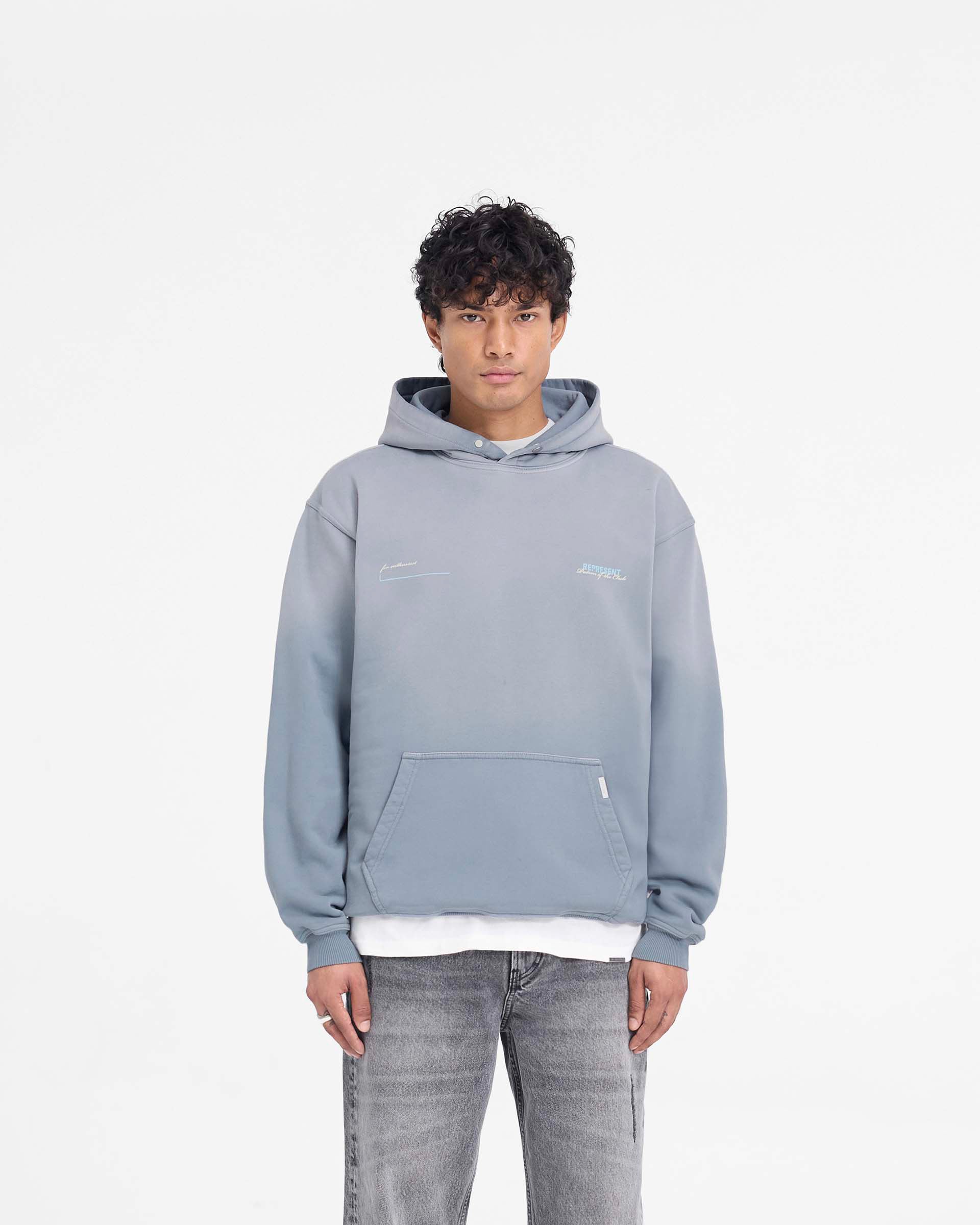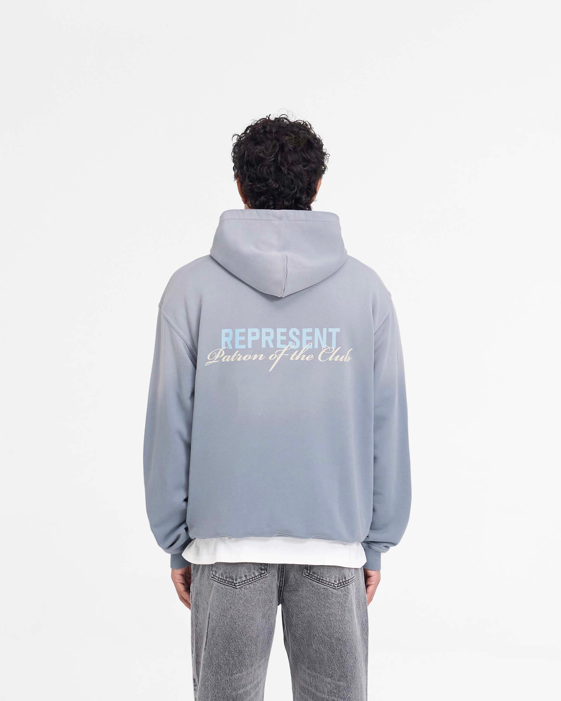 Introducing the Patron of the Club Hoodie in Washed Grey, a luxury hoodie with an oversized fit, crafted from heavy weight jersey cotton with a fade out wash and spray applied for a distinctive worn look. Super soft and pre-shrunk for the ultimate jersey. Ribbed hem & cuffs and featuring our Patron of the Club print to the chest & back. The hoodie is finished with a Represent metal bar to the pocket, and Cobrax popper to the hood.