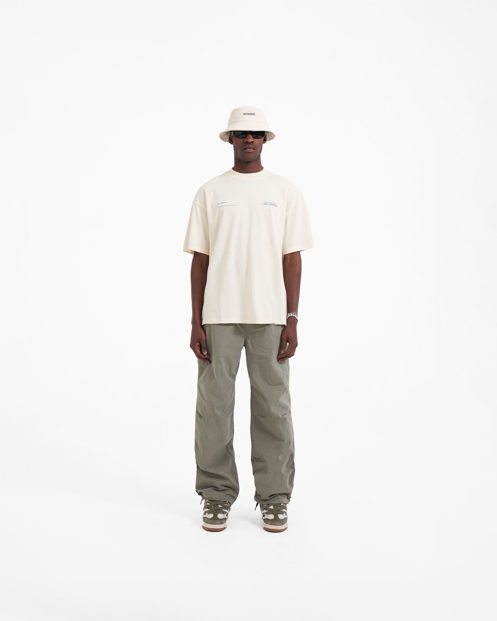 The Patron of the Club T-Shirt in Buttercream features a slightly oversized fit. Crafted from medium weight jersey cotton and featuring a ribbed crewneck collar, it has powder blue and black Represent Patron of the Club branding to the chest and rear.