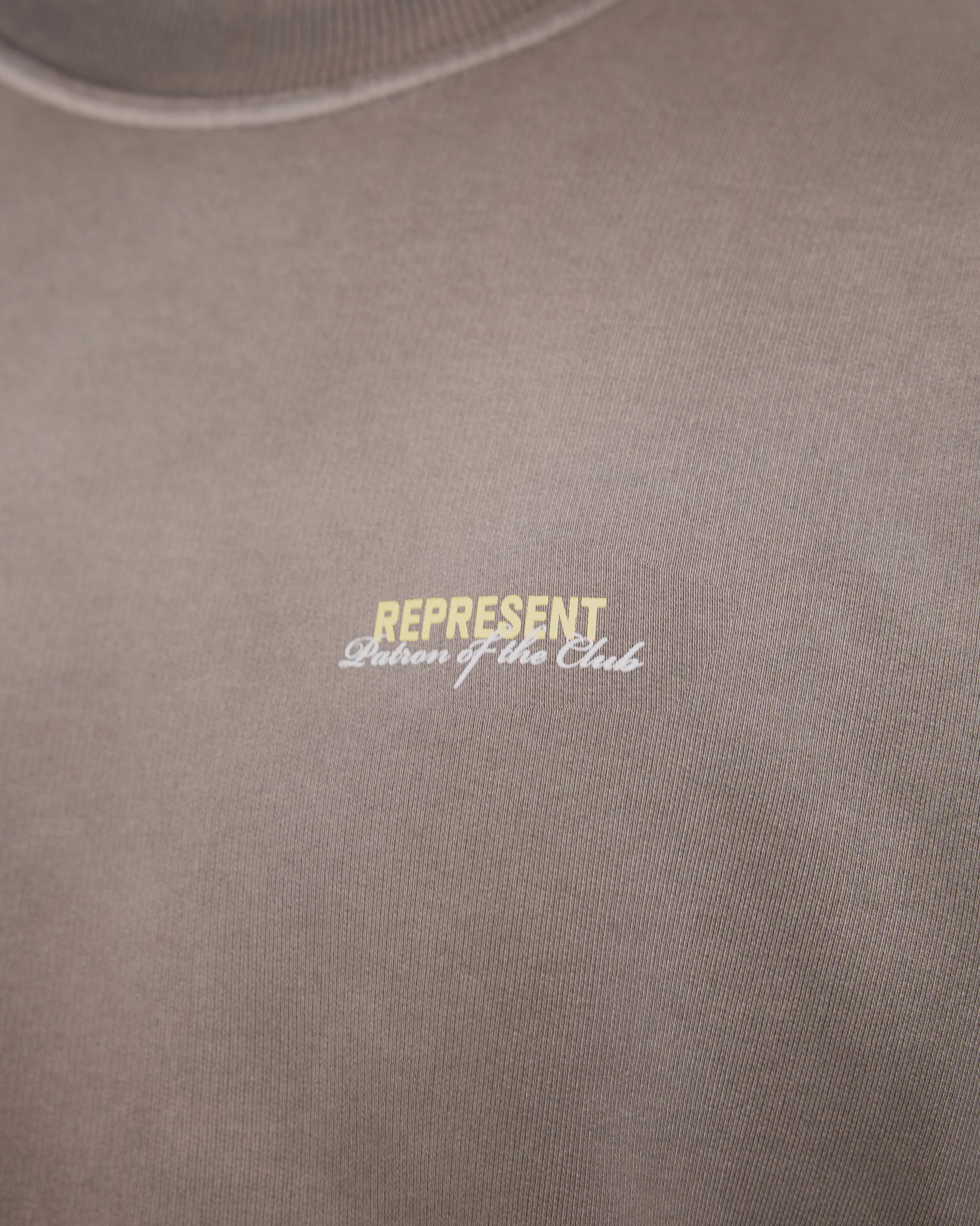 The Patron of the Club T-Shirt in Washed Olive features a slightly oversized fit, with a fade out wash and spray applied to the fabric for a distinctive worn look. Crafted from medium weight jersey cotton and featuring a ribbed crewneck collar, it has Patron of the Club branding to the chest and rear, finished with a Represent metal bar logo to the hem.