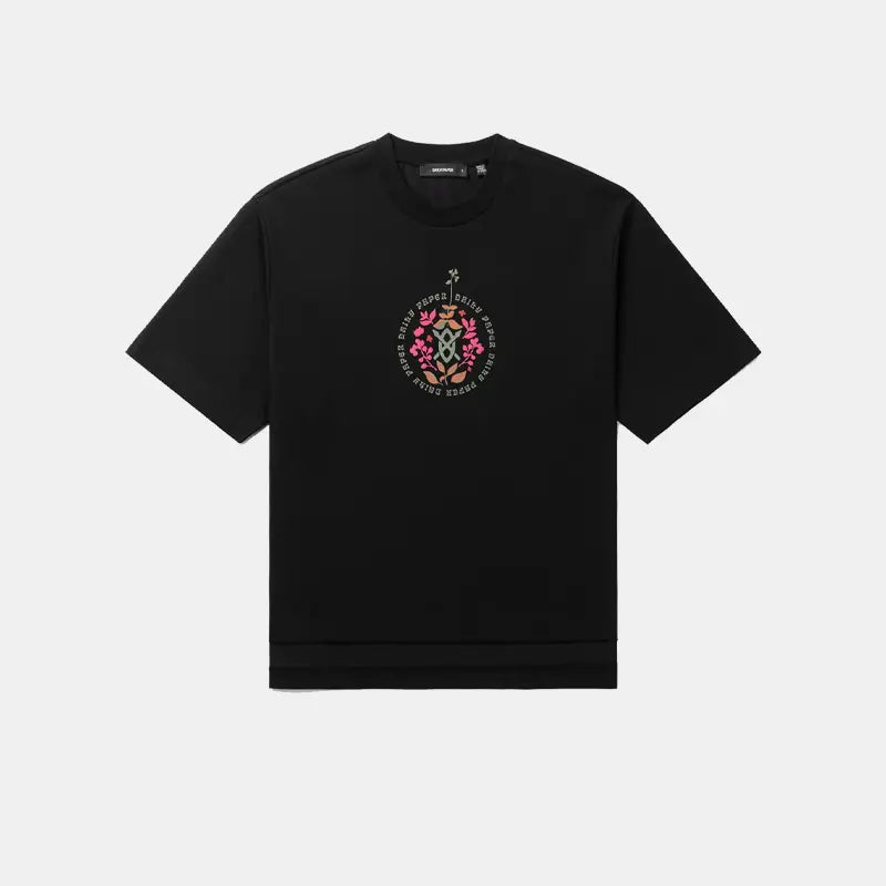 This relaxed womenswear crewneck style is lightweight and stretchy. The t-shirt is cropped with side slits, and is decorated with a raised Daily Paper flower henna print. Available in two seasonal colourways.