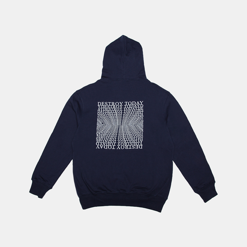 100% French Terry Cotton. Wax-dipped heavy duty drawstrings. Front kangaroo pouch-pocket. "Sol Sol" white embroidery on front. Back "Destroy Today" repeat white plastisol screen print.