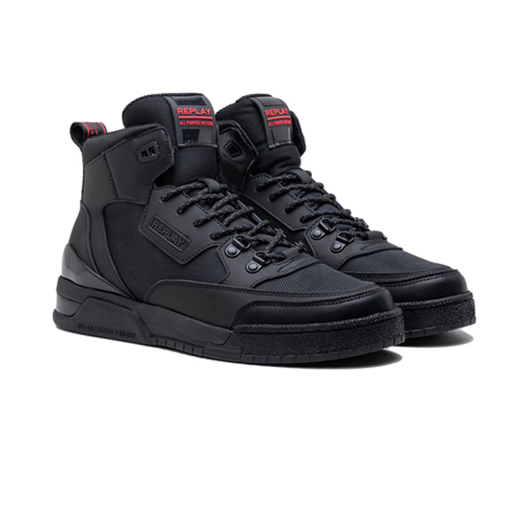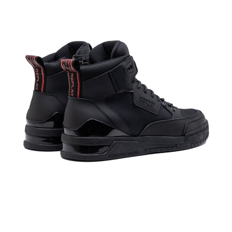 Astro Speed S lace-up mid-top sneakers featuring a PU upper with rubberised details and a two-tone sole. This style features a padded collar and a convenient branded tape pull-tab and a shiny-effect insert on the heel. The engraved Replay lettering on the side and tongue complement the design.
