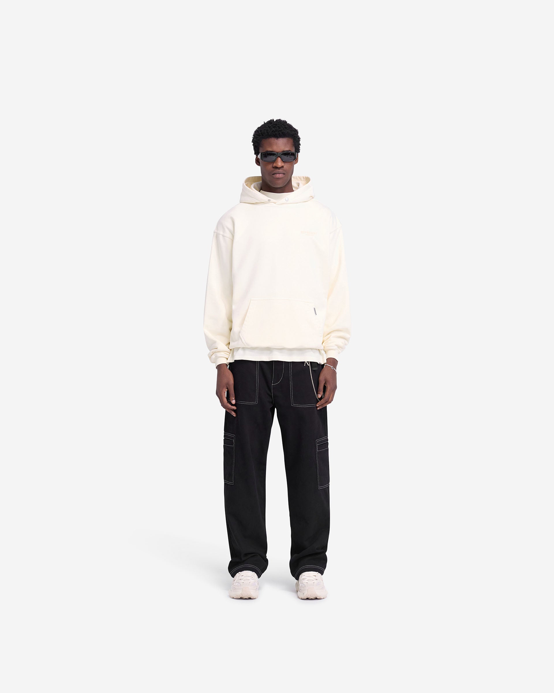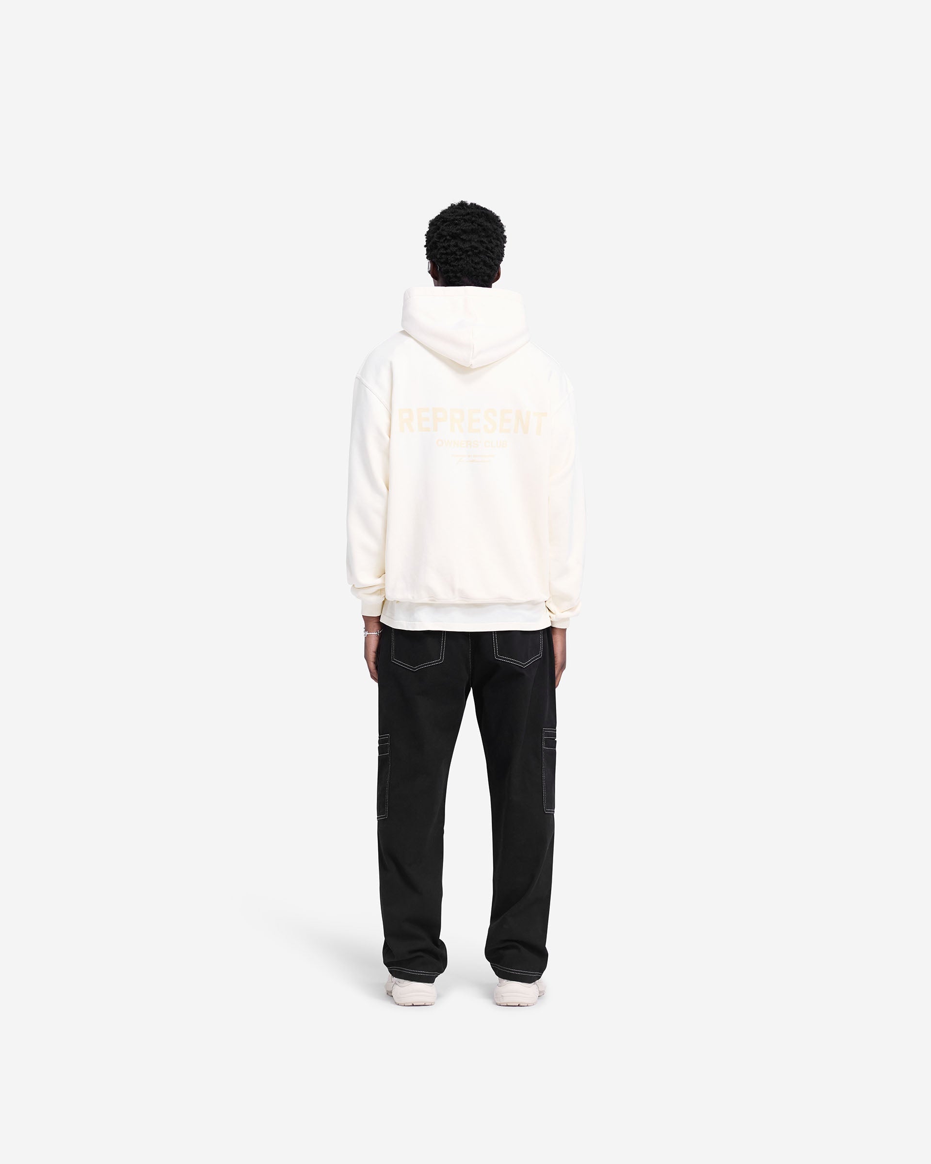 Buttercream Hoodie with an oversized fit, crafted from a heavy weight jersey cotton. Super soft, pre-shrunk and piece dyed for the ultimate jersey. Ribbed hem & cuffs. Owners Club print to the chest & back. This hoodie is finished with our signature metal bar logo to the pocket.