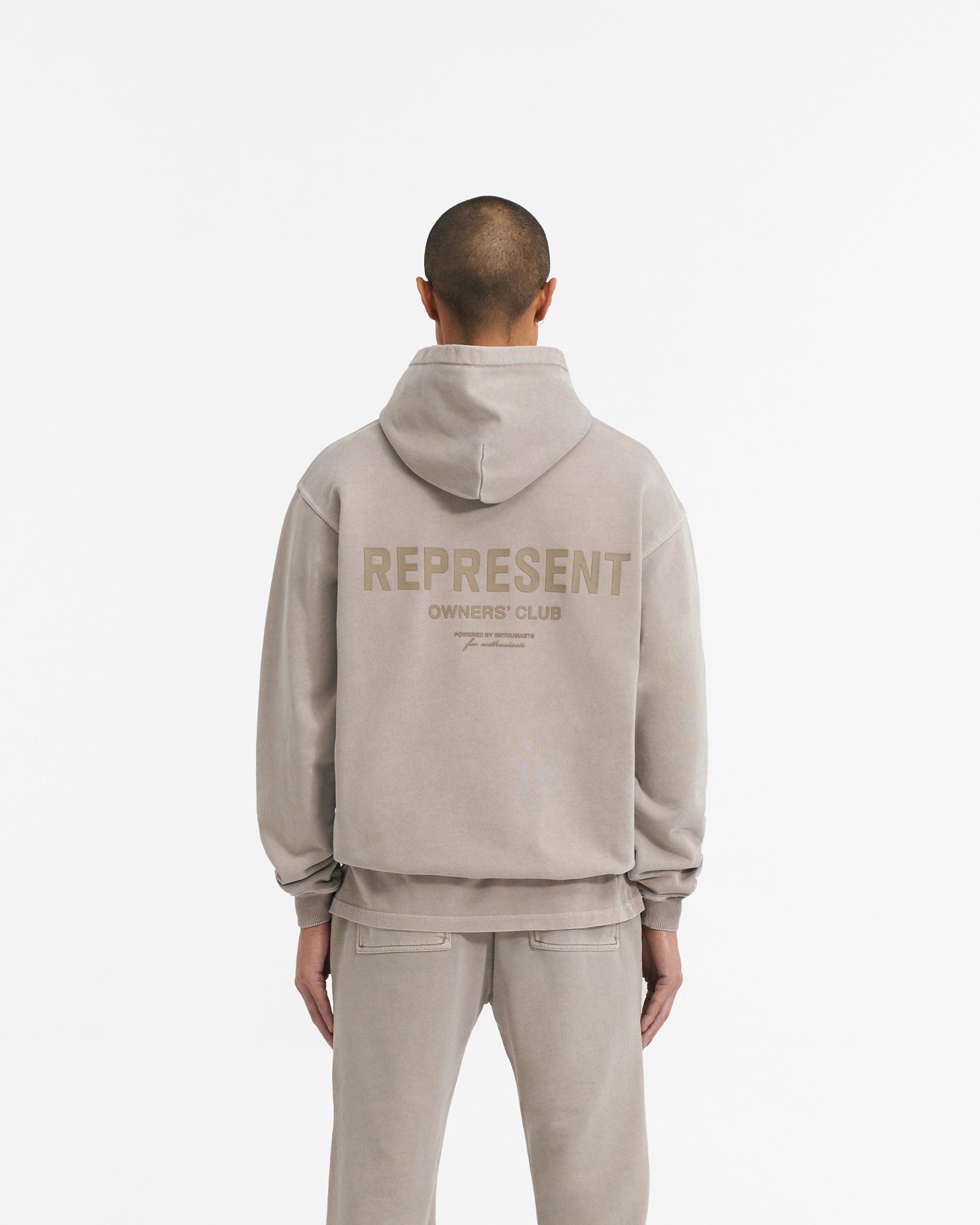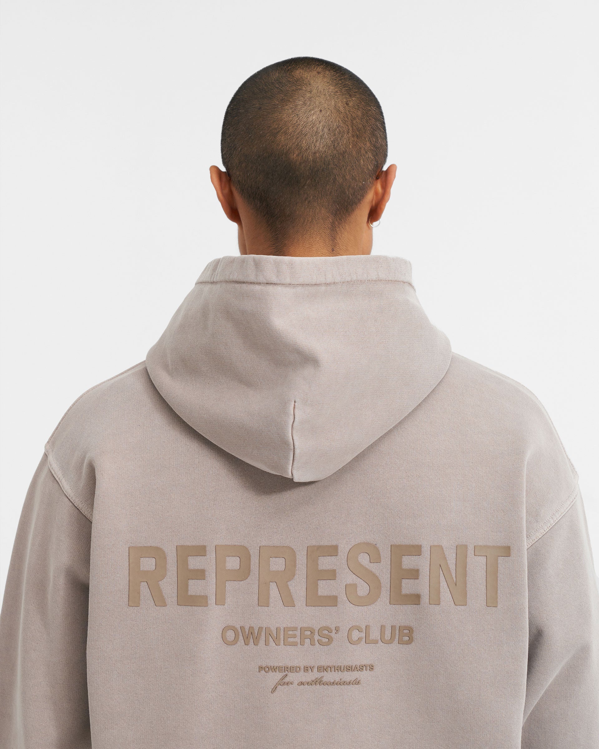 Introducing the Represent Owners’ Club Hoodie in Mushroom, crafted from heavy weight jersey cotton with a slightly oversized fit. The hoodie features ribbed hems and cuffs, with a cobrax popper to the hood and Represent metal bar to the pocket. It is finished with tonal high build Represent Owners’ Club branding to the chest and back.