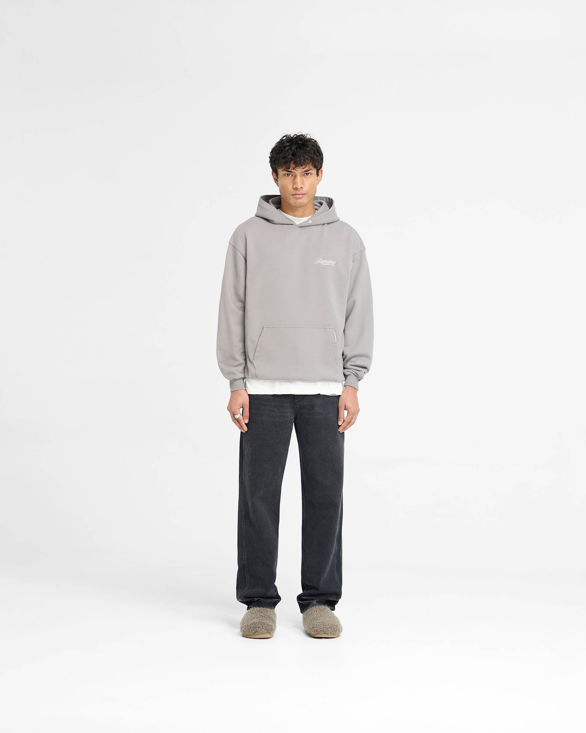 Introducing the latest evolution of the Represent Owners’ Club Hoodie in Slate, crafted from heavy weight jersey cotton with a slightly oversized fit. The hoodie features a ribbed hem and cuffs, with a Cobrax popper to the hood and Represent metal bar to the pocket.