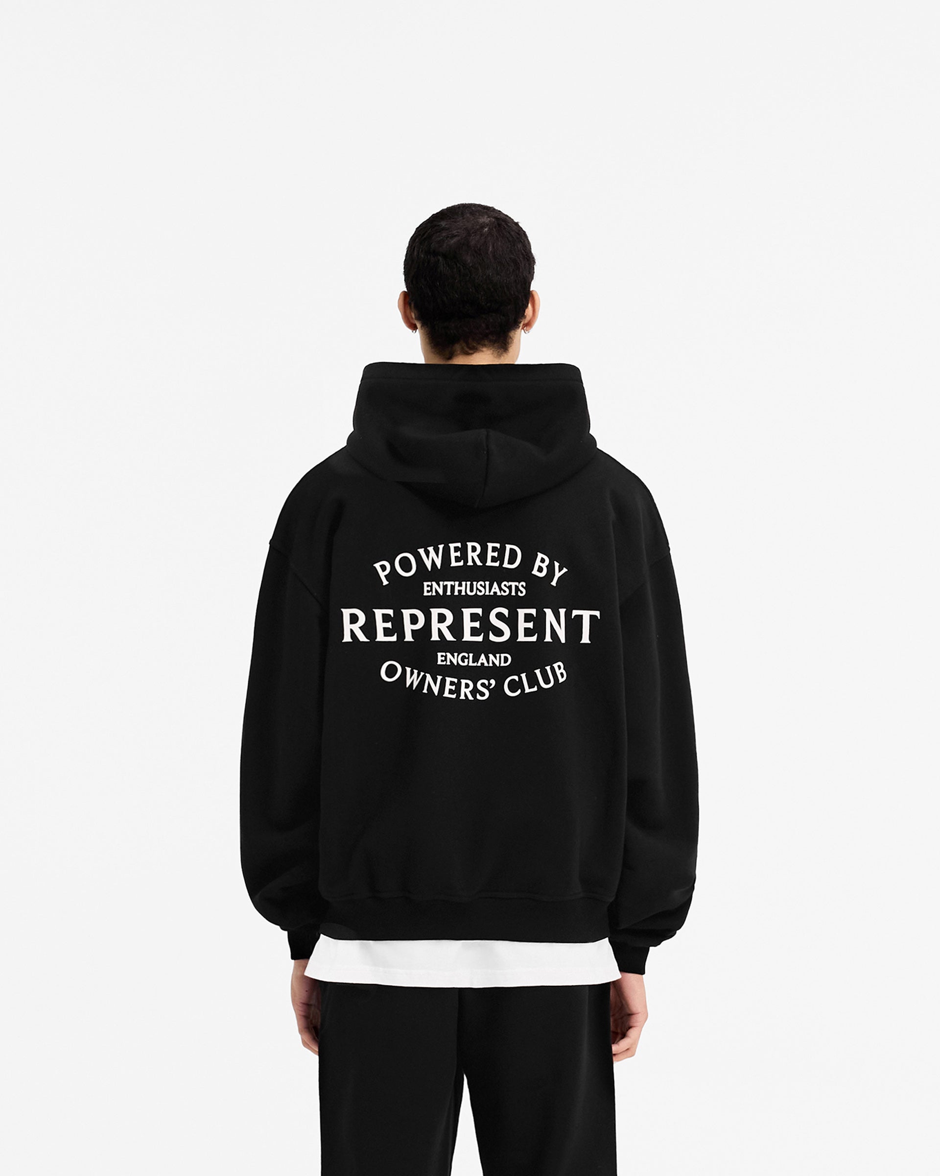 Introducing the Represent Owners’ Club Stamp Zip Up Hoodie in Jet Black, a clean and refreshed take on the classic Owners’ Club Hoodie. Crafted from a heavy weight jersey cotton with a slightly oversized fit, the hoodie has a ribbed hem and cuffs, with a double ended RiRi zip to the front, and Represent metal bar logo to the pocket. It features our high build screen printed Stamp Owners’ Club branding to the chest and back.