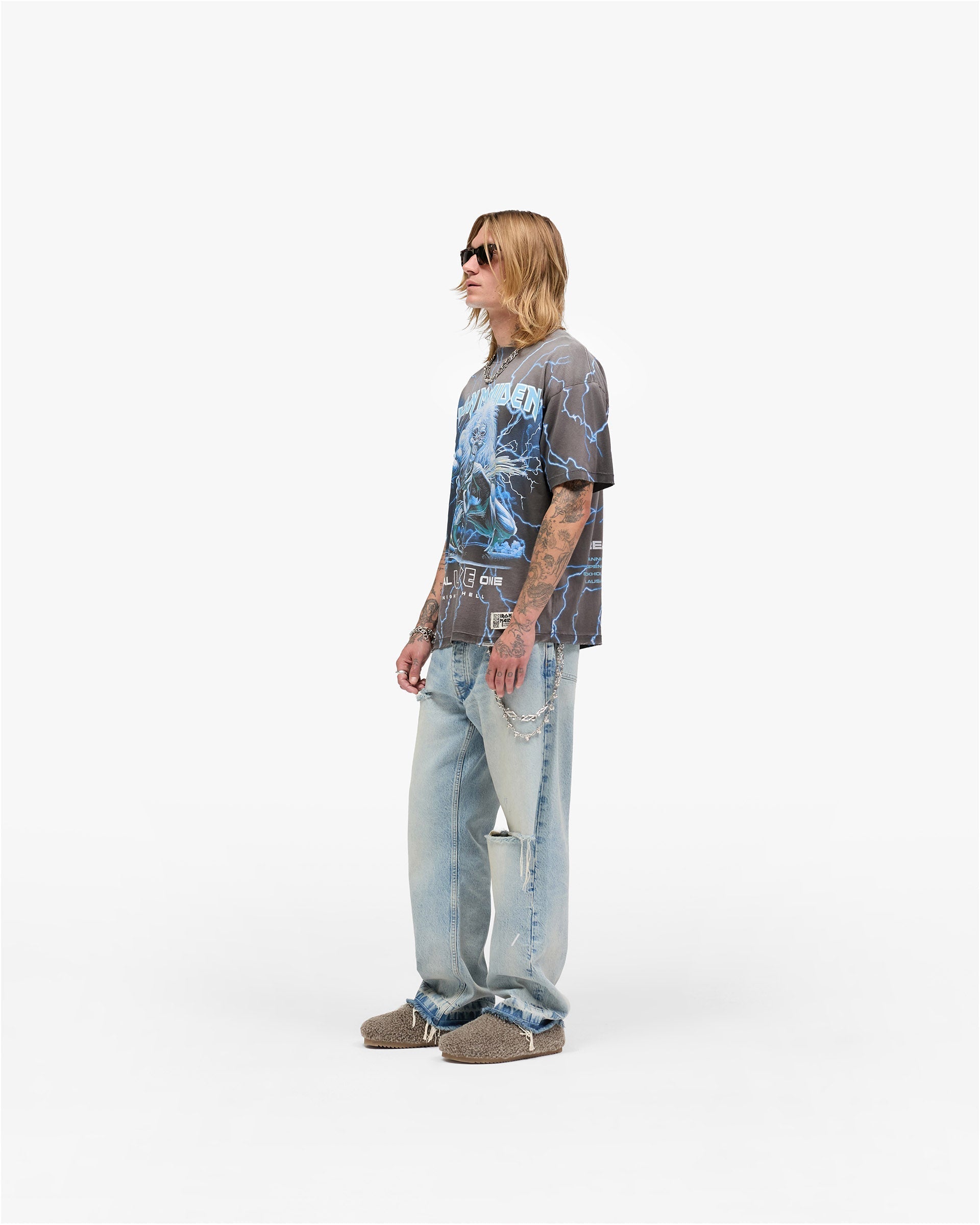Introducing the Represent x Iron Maiden A Real Live One T-Shirt in Stained Brown. Inspired by the raw energy of Iron Maiden’s 1993 live album, this piece features an electrifying full-body lightning print and iconic Eddie graphic. Cut in Represent’s classic oversized fit and crafted from 160GSM slub cotton-hemp jersey, it’s finished with a fade-out wash, distressed details, and commemorative back tour print for a true vintage aesthetic.