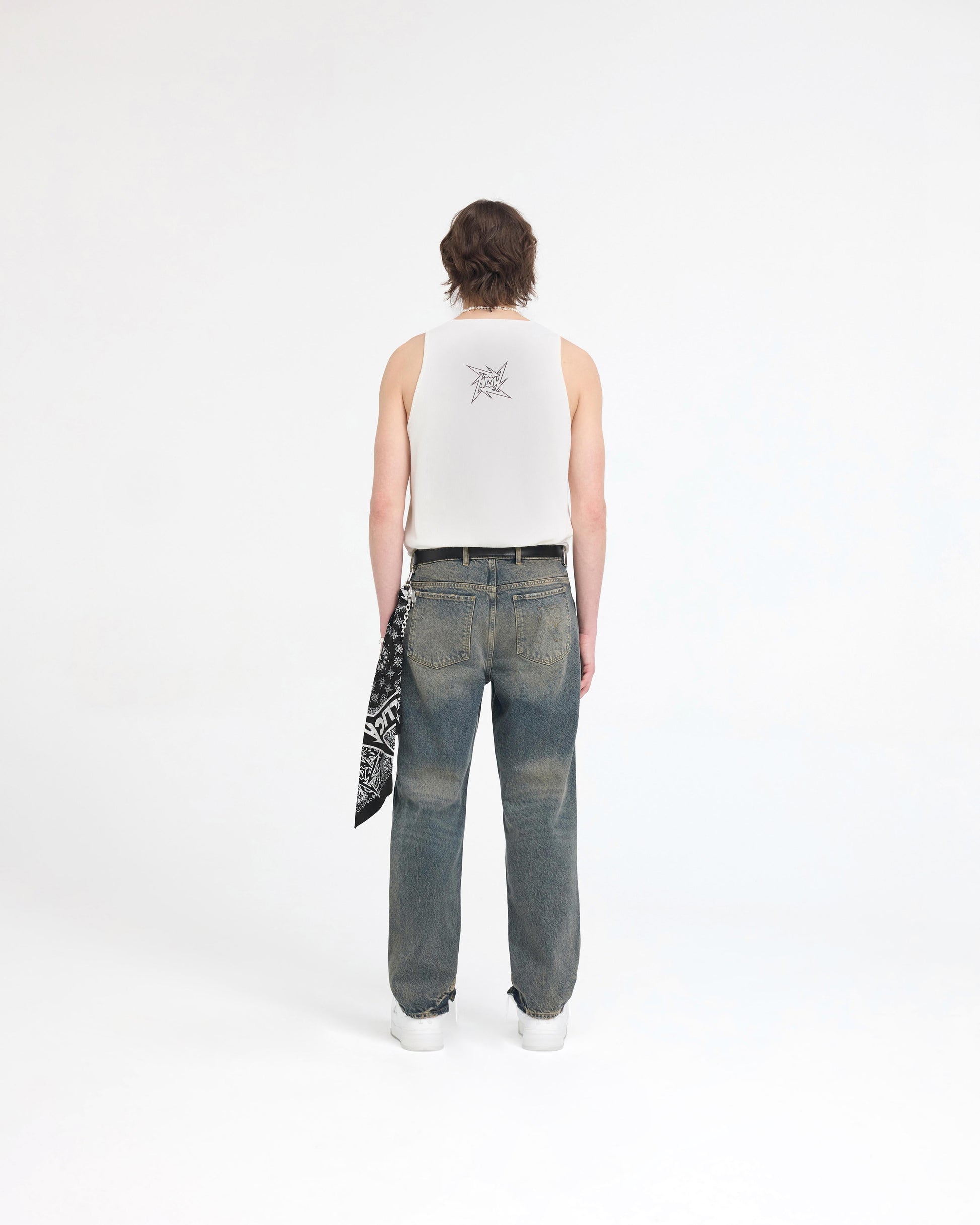 Introducing the Metallica Local Crew Vest in Flat White, a regular fit ribbed vest featuring cracked prints of the Metallica logo to the front and the ninja star logo to the back, initialised to uphold quintessential Represent branding whilst preserving the aesthetic of the original design. The vest is finished with the Represent metal bar logo to the hem.