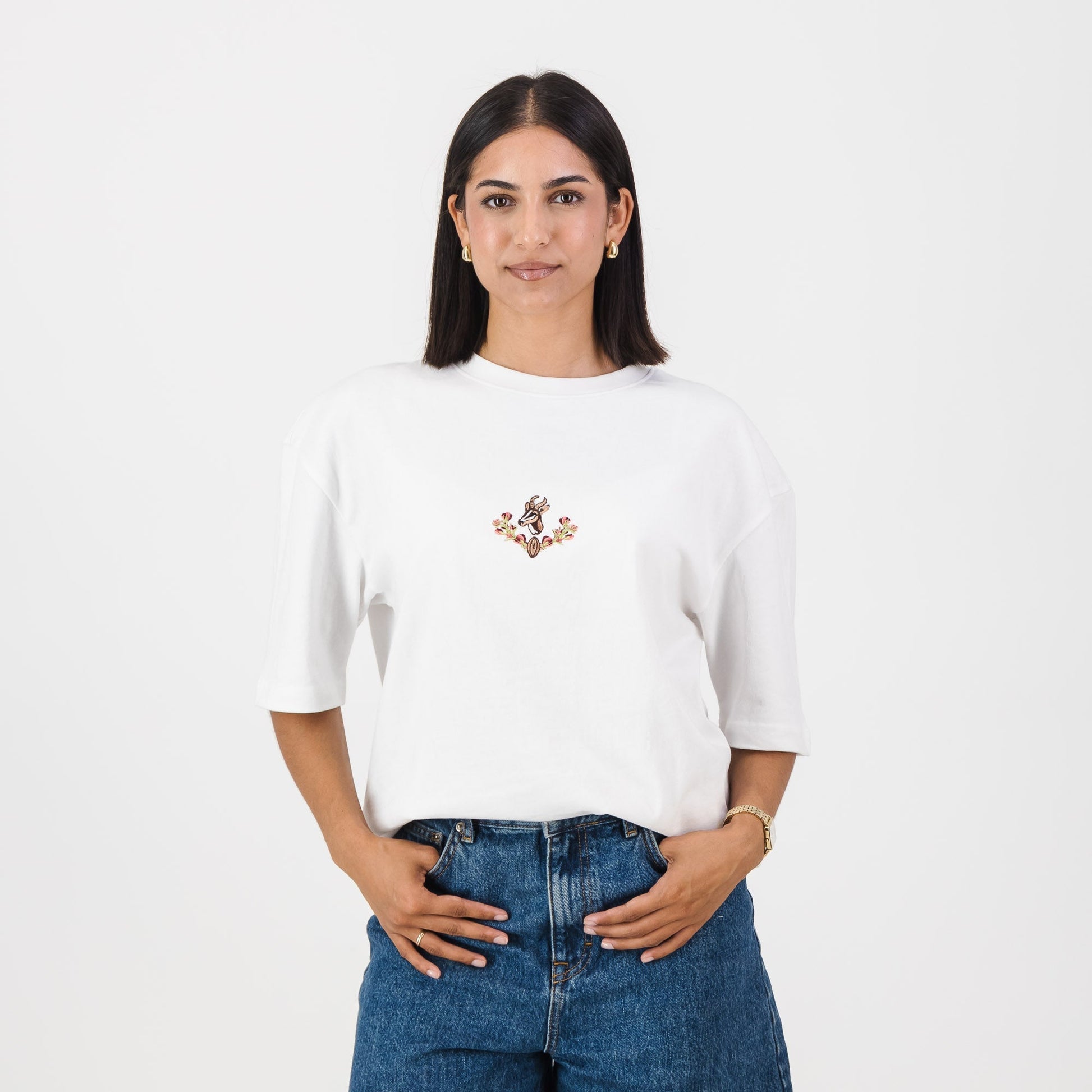 The Springboks Wreath Boxy Crew Tee is the perfect blend of classic style and team pride. Crafted from soft, premium cotton, this tee features a relaxed, boxy fit for ultimate comfort and a modern, oversized silhouette. The standout detail is the high-quality, detailed wreath embroidery at the center chest, showcasing the iconic Springbok emblem in an elegant, refined design. The white color offers a fresh, versatile look that pairs easily with any casual outfit, making it ideal for everything from game day to laid-back weekends. Whether you're supporting your team or just enjoying a day out, this tee is the perfect way to showcase your Springboks pride with a touch of sophistication.