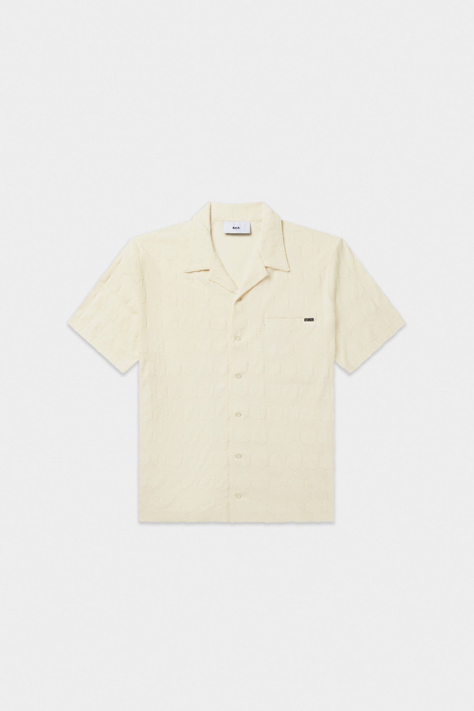 Introducing the Terry Box Shirt in sleek Light Beige. Made with soft toweling fabric in a unique hex shape, this shirt offers both style and comfort. The metal clip on the chest pocket adds a touch of flair to this versatile piece. Upgrade your wardrobe with this must-have shirt.