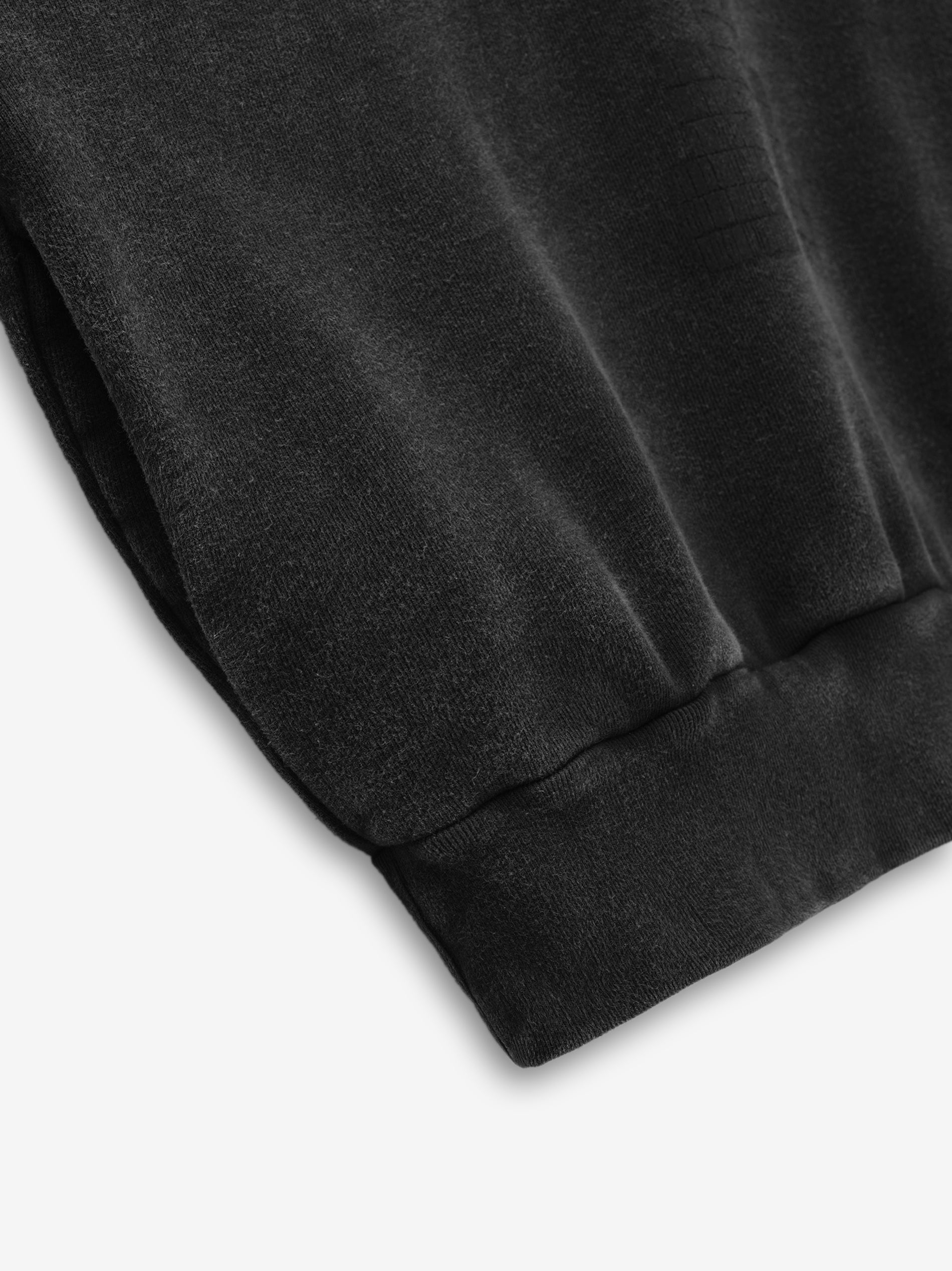 The Thunderbird Crewneck Sweatshirt is made in Portugal from 100% cotton French terry with a vintage wash to contribute depth and softness. The signature Fear of God fit is evident with a relaxed silhouette, and dropped shoulders. Additional details include a printed Thunderbird on the front, side pockets, rib-knit cuffs, waist hem, and leather Fear of God label.